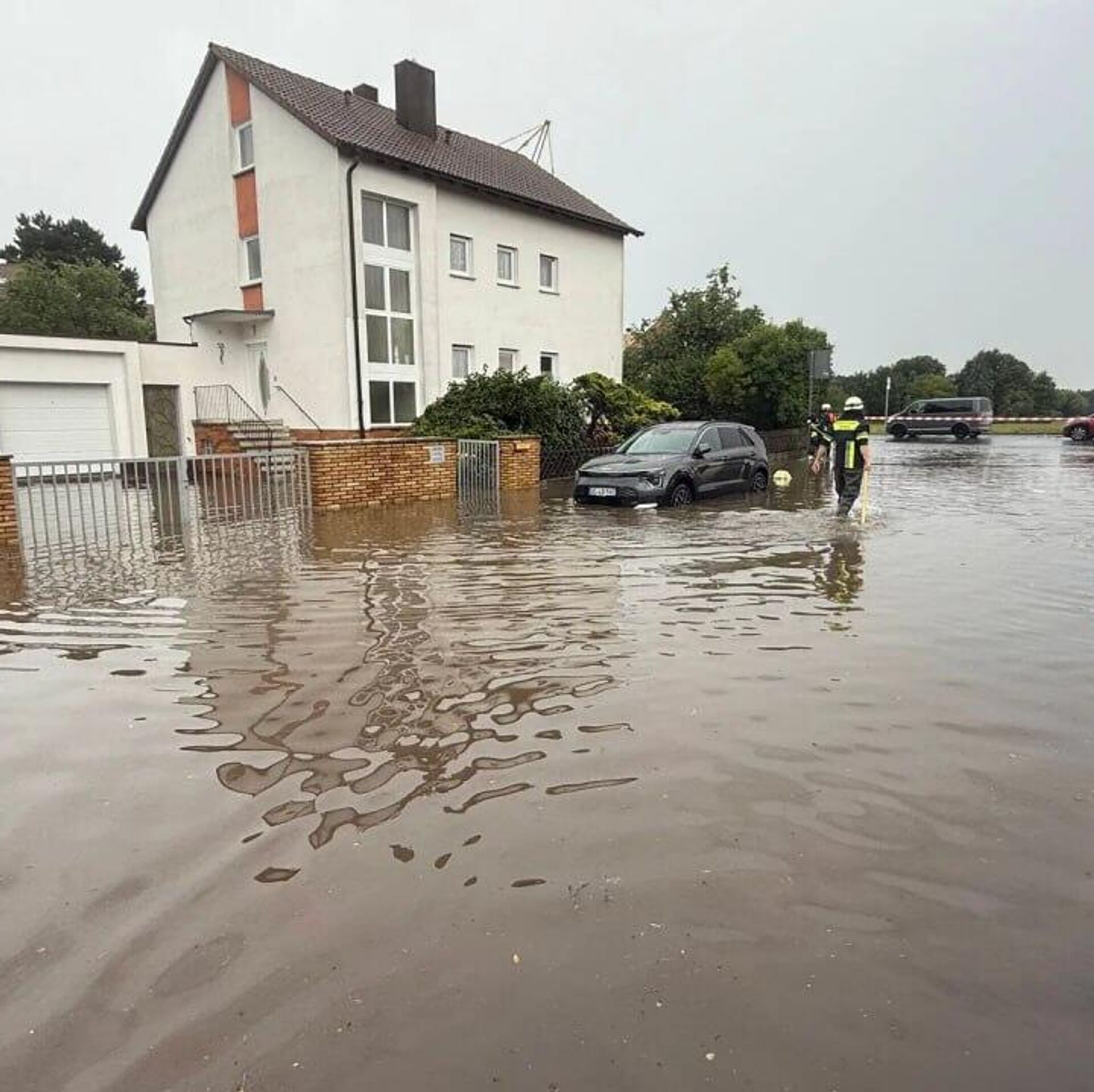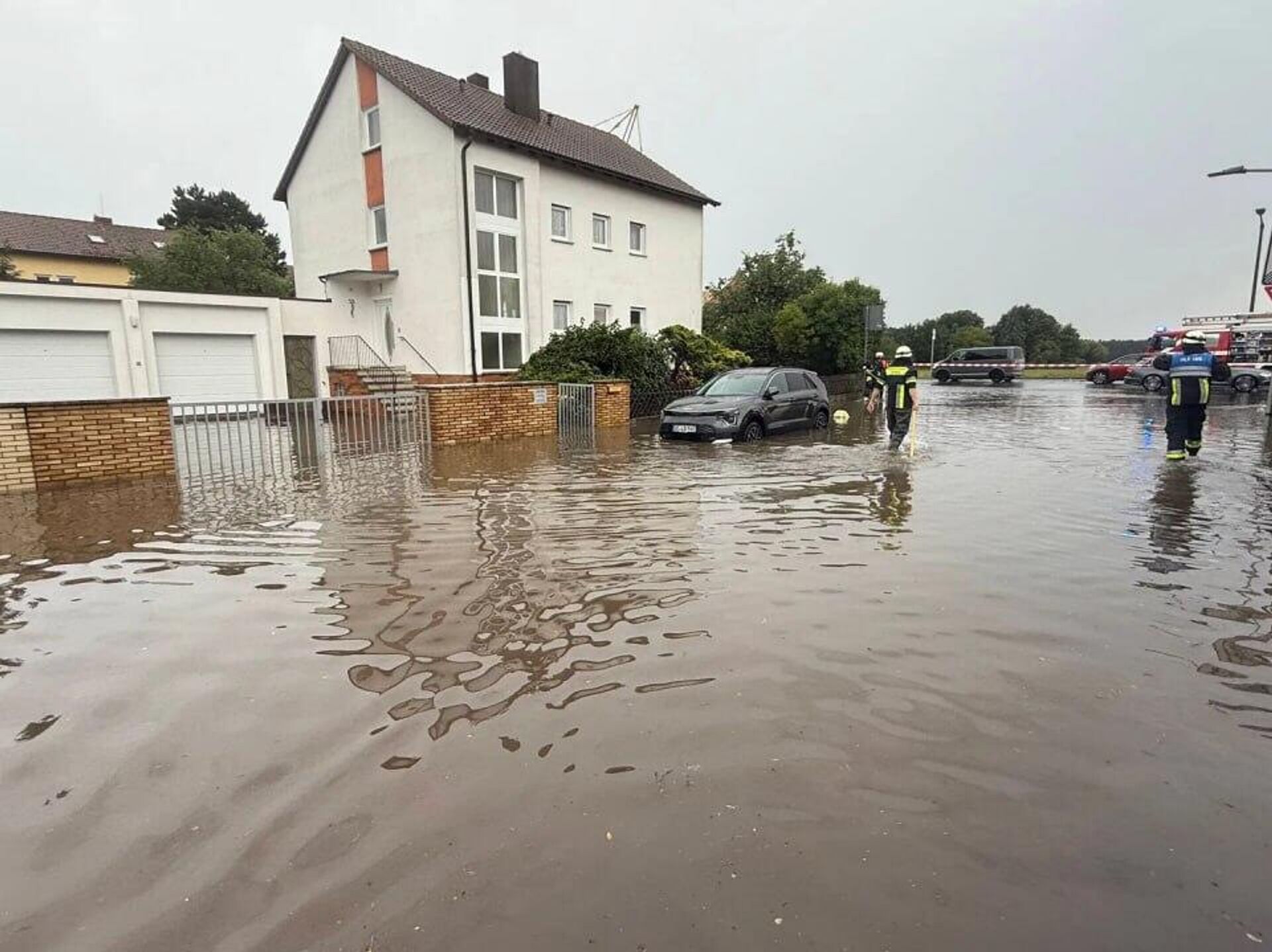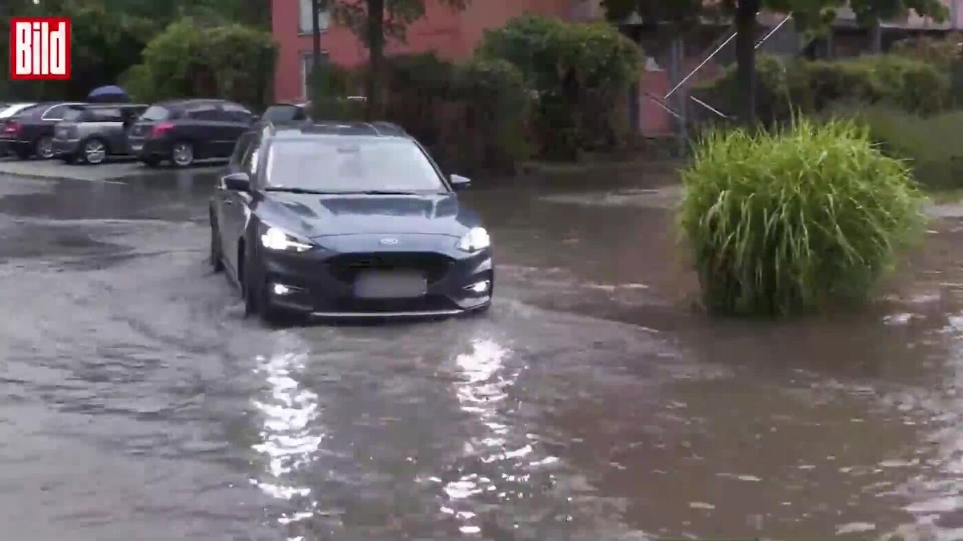در برخی مناطق بایرن، بارانهای شدید منجر به آبگرفتگی خیابانها و زیرزمینها شده است.
