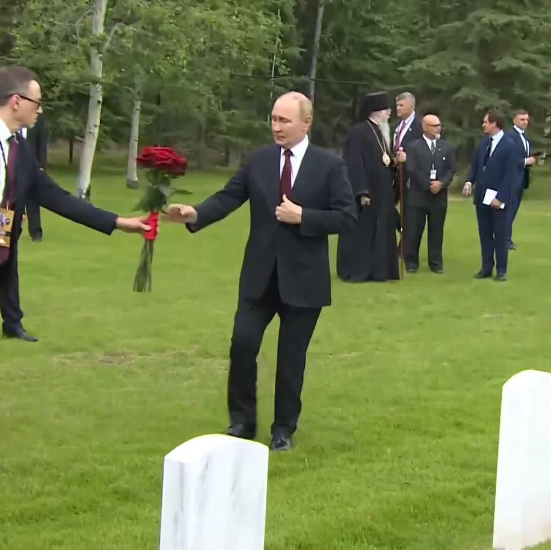 ولادیمیر پوتین پس از گفتگو با ترامپ از گورستانی که خلبانان شوروی در آن دفن شدهاند، بازدید و ادای احترام کرد