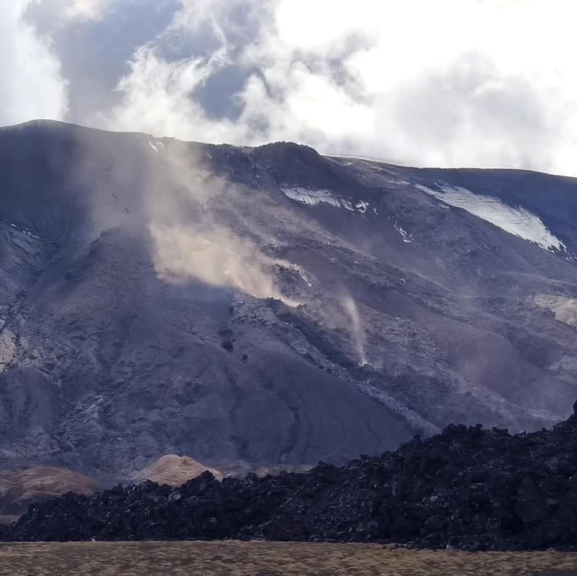 دانشمندان تأکید میکنند، که این یک رویداد نادر است - نخستین فوران از این نوع برای این آتشفشان در 500 سال پسین. جریان گدازه به آرامی در حرکت است و با ترک خوردن بلوکهای گدازه همراه میباشد.