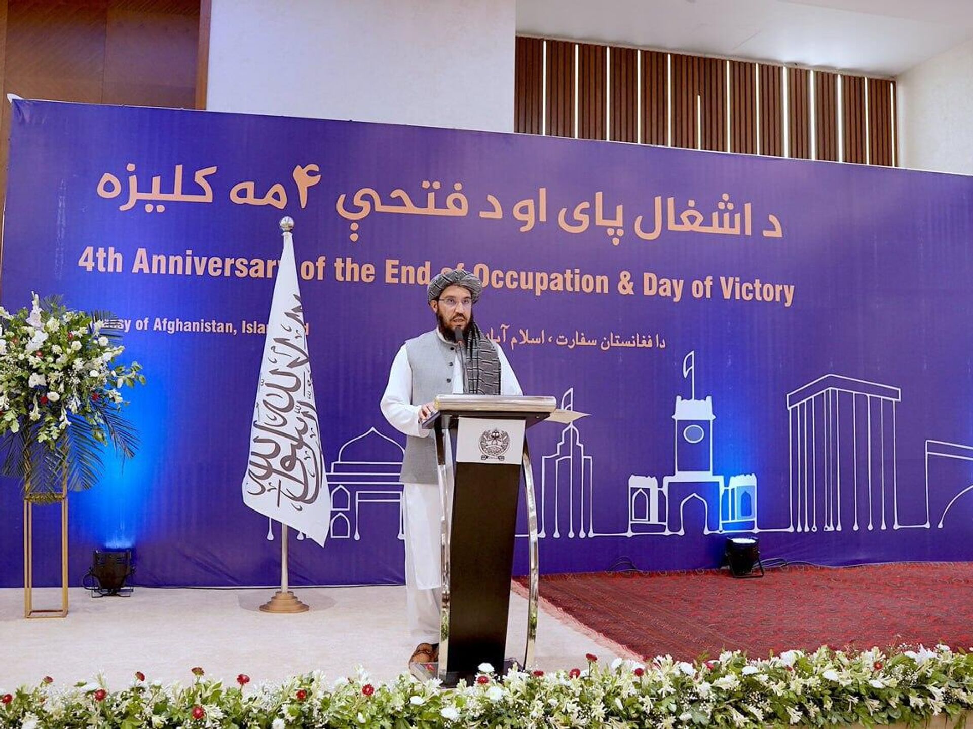 سردار احمد شکیب، سفیر امارت اسلامی در اسلامآباد، در مراسم چهارمین سالگرد پایان اشغال افغانستان اعلام کرد که امارت اسلامی در چهار سال گذشته با پشتیبانی مردم و منابع داخلی، پایههای حکومتداری را فعال و نظم و ثبات را به کشور بازگردانده است.