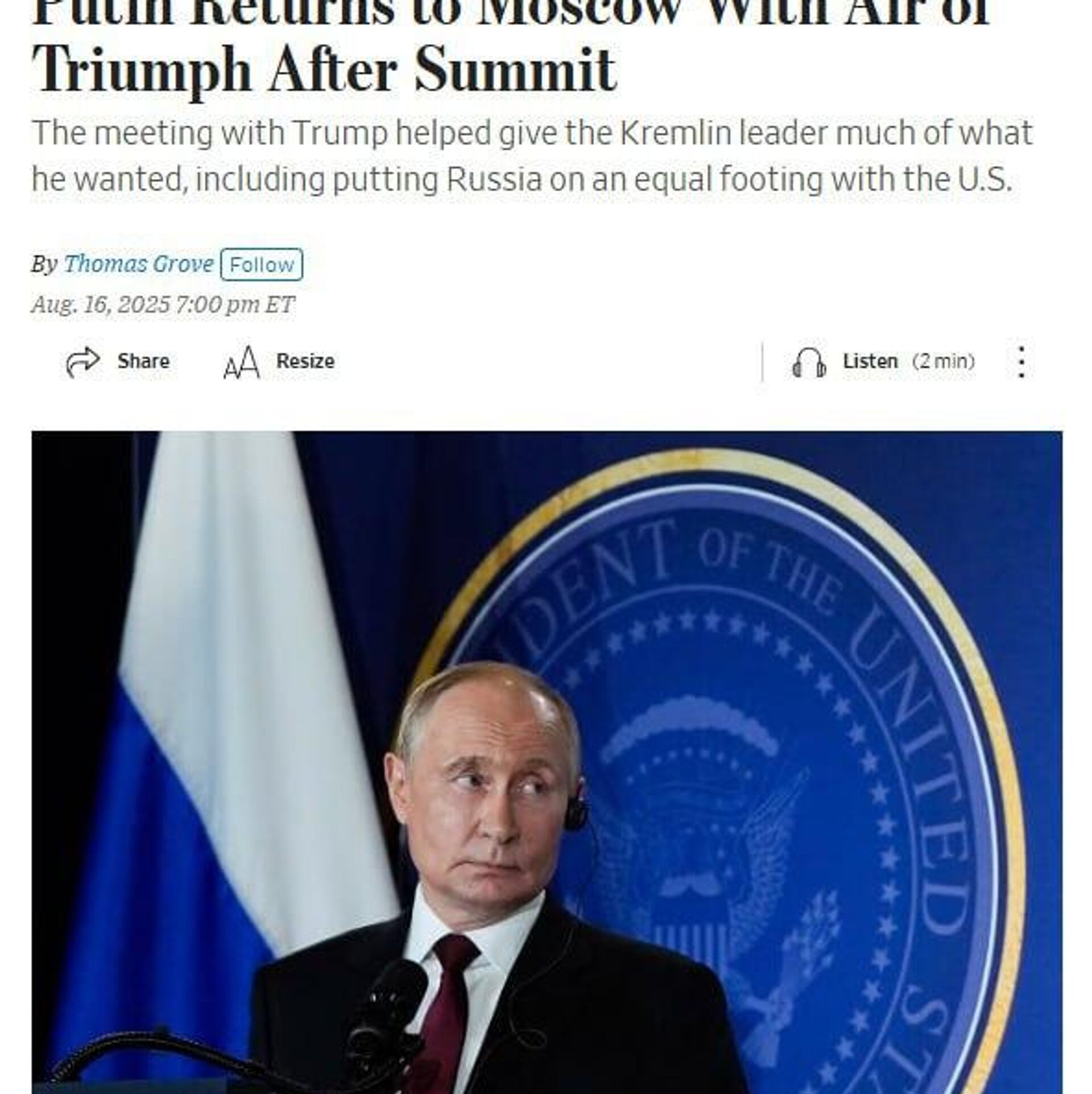 وال استریت ژورنال: ترامپ با همتای روسی خود در آلاسکا با ولخرجیهای خاص این نمایشگر سابق - فرش قرمز، پرواز تجهیزات نظامی و سوار شدن بر لیموزین ریاست جمهوری - دیدار کرد.