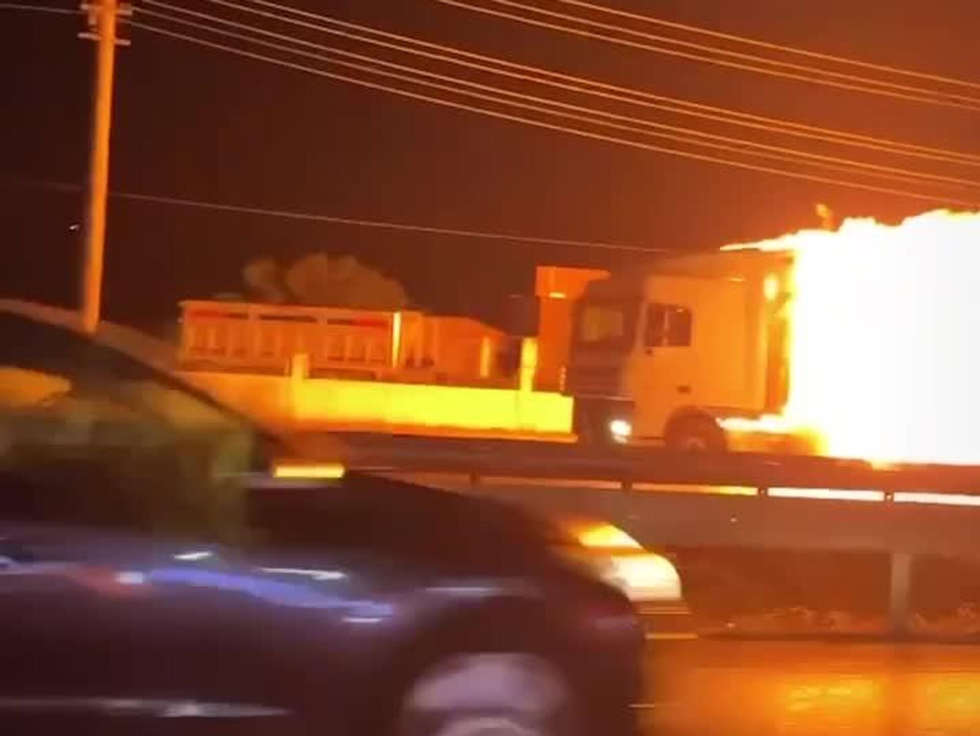 این کامیون حدود 8 کیلومتر مسیر را در حالیکه شعلههای آتش را روی آسفالت جاده پخش میکرد به حرکت خود ادامه داد تا به موترهای دیگر آسیب نرسد.