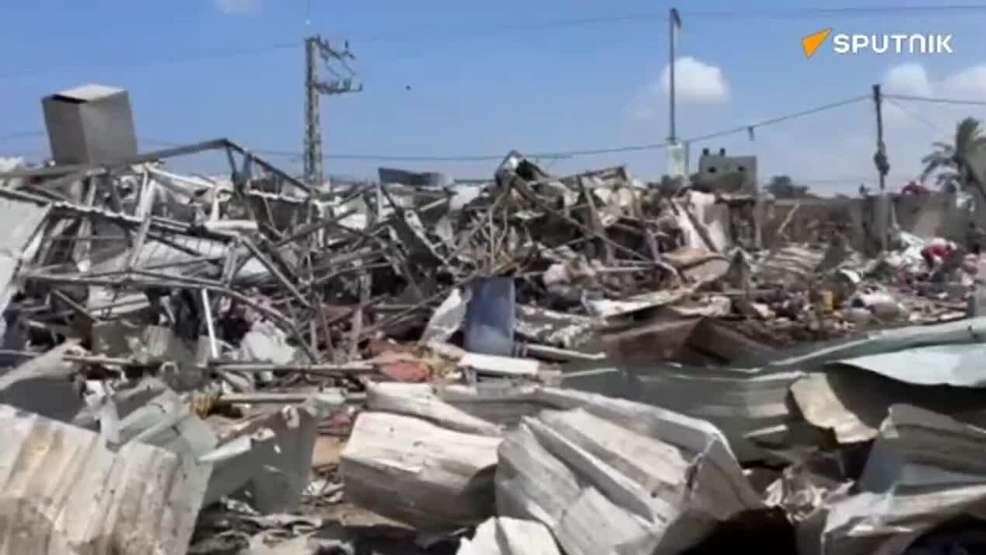 ◻خبرگزاری اسپوتنیک اولین تصاویر از نوار غزه را منتشر کرد، جایی که روز پنجشنبه، در نتیجه حمله هوایی اسرائیل، شهرک چادرنشین پناهندگان المناصره در بخش مرکزی منطقه به طور کامل تخریب شد.