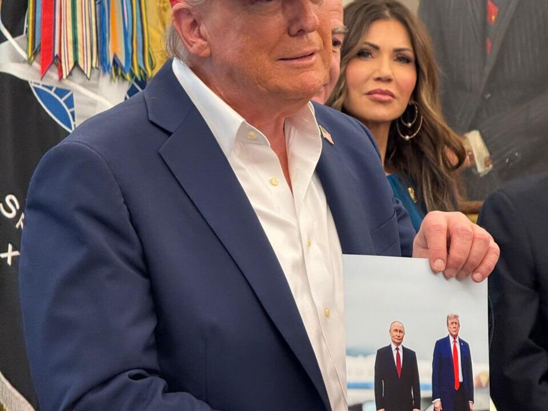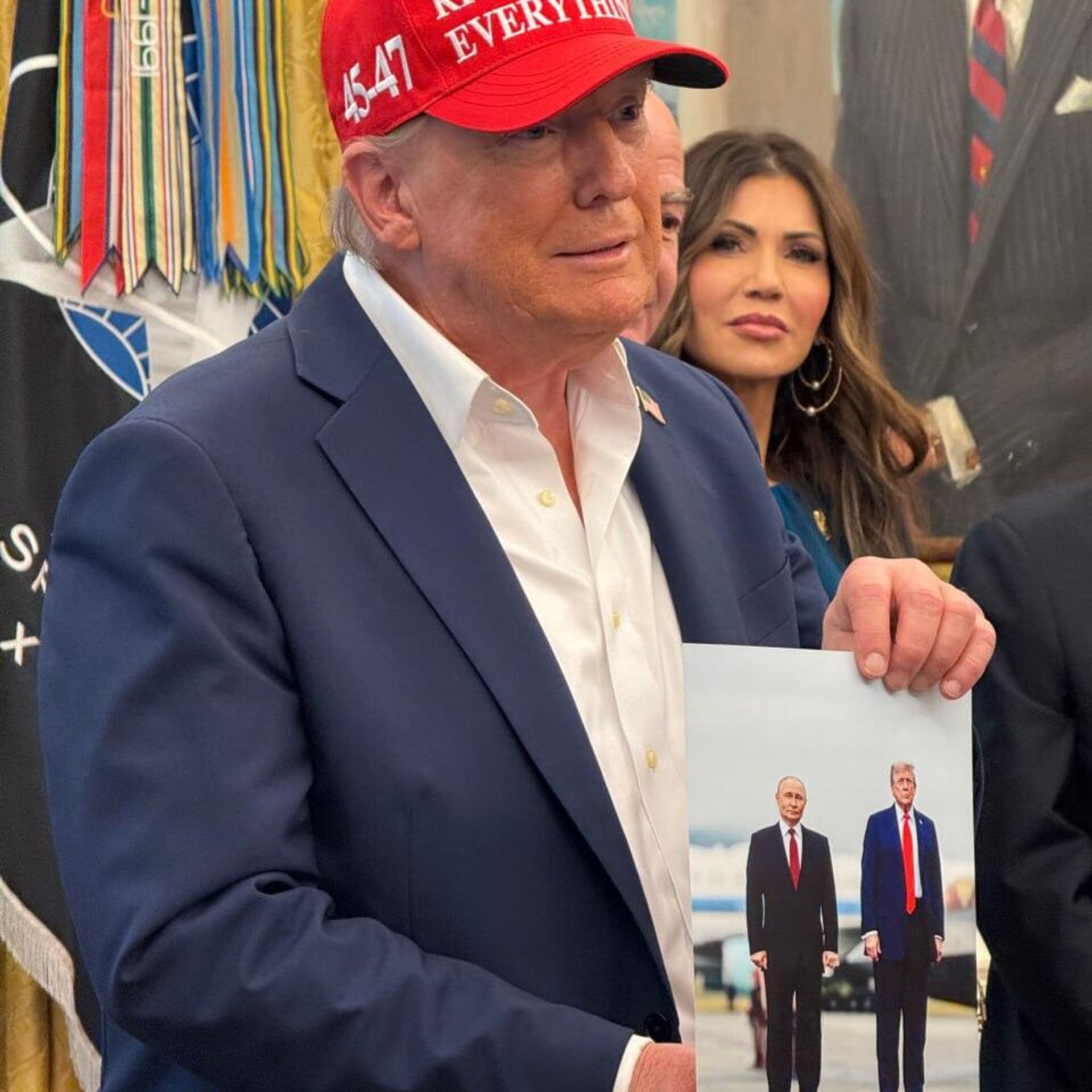 کاخ سفید عکسی از ترامپ را به اشتراک گذاشتند که در آن ترامپ عکسی از خودش و پوتین را که توسط خود رئیس جمهور روسیه برایش فرستاده شده بود، به خبرنگاران نشان میدهد.