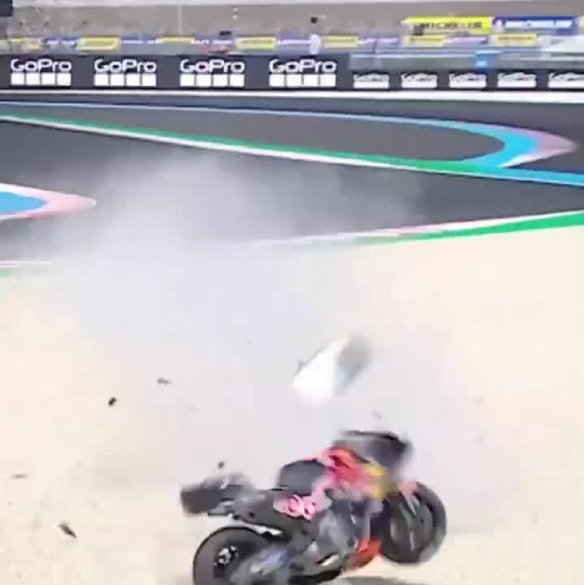 پدرو آکوستا، موتورسوار اسپانیایی، در هنگام تمرین از پیست بیرون شد. او آسیب جدی ندید. پیش از برخورد با دوربین، موتورسیکلت چندین بار واژگون شد.