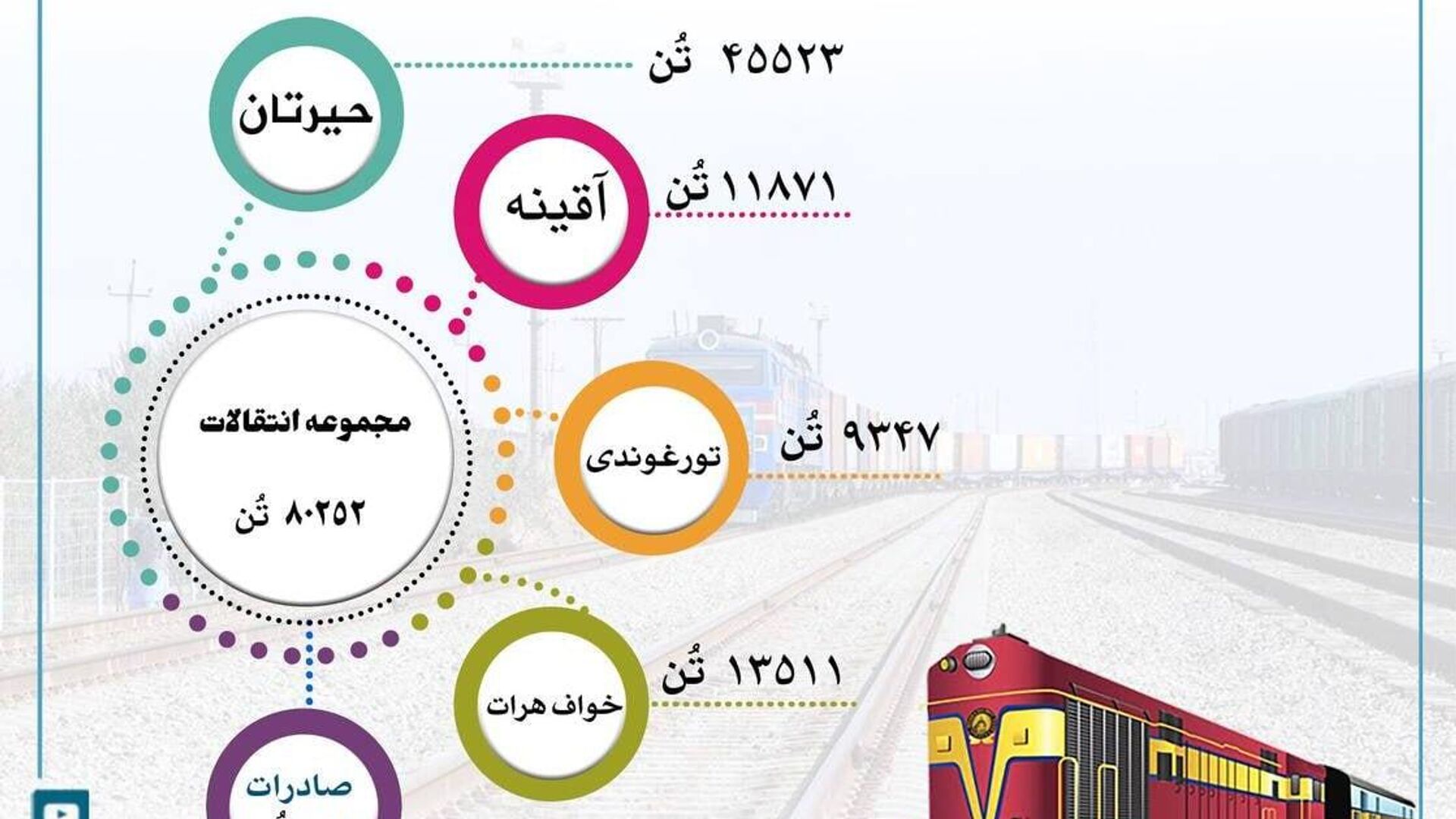 ⭕بیش از 80 هزار و 200 تُن انتقالات از طریق خطوط آهن افغانستان در یک هفته