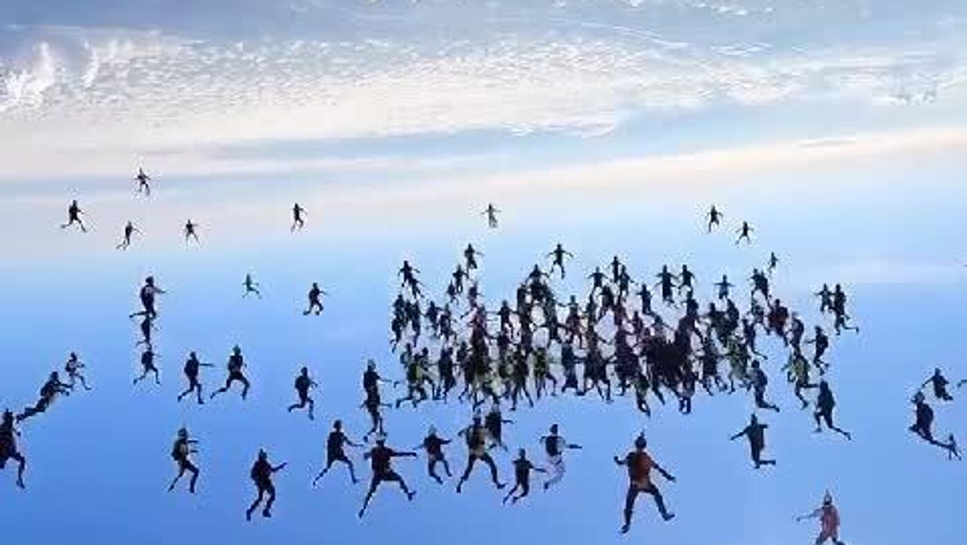 در تلاشی برای نشان دادن قابلیتهای ورزشهای هوایی در رویارویی با گسترش سریع پهپادها، 174 چترباز رکورد جهانی جدیدی برای تشکیل عمودی در هوا ثبت کردند.