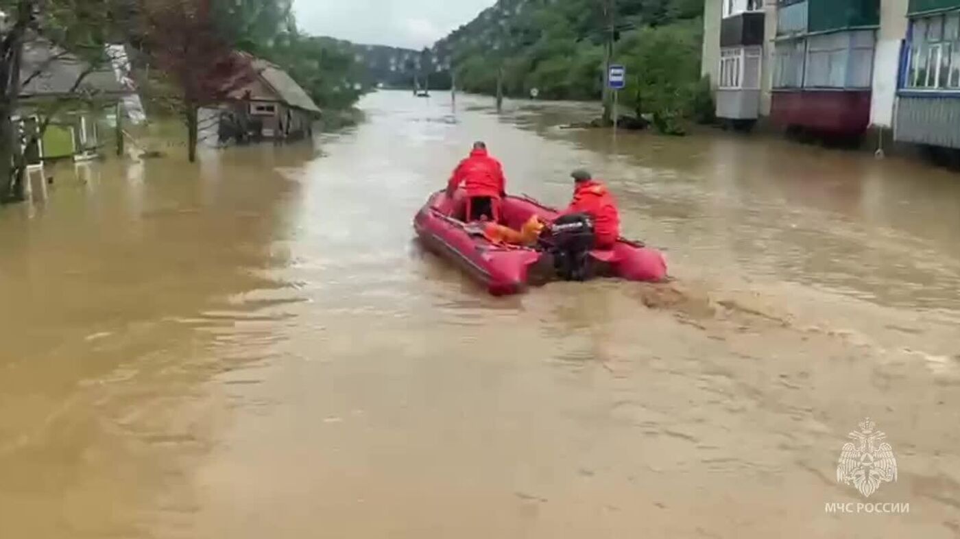 رودخانه کازاچکا به دلیل بارندگیهای شدید طغیان کرده است. وزارت موقعیتهای اضطراری نوارهای دیداری از بیرون کردن باشندگان منتشر کرده است.