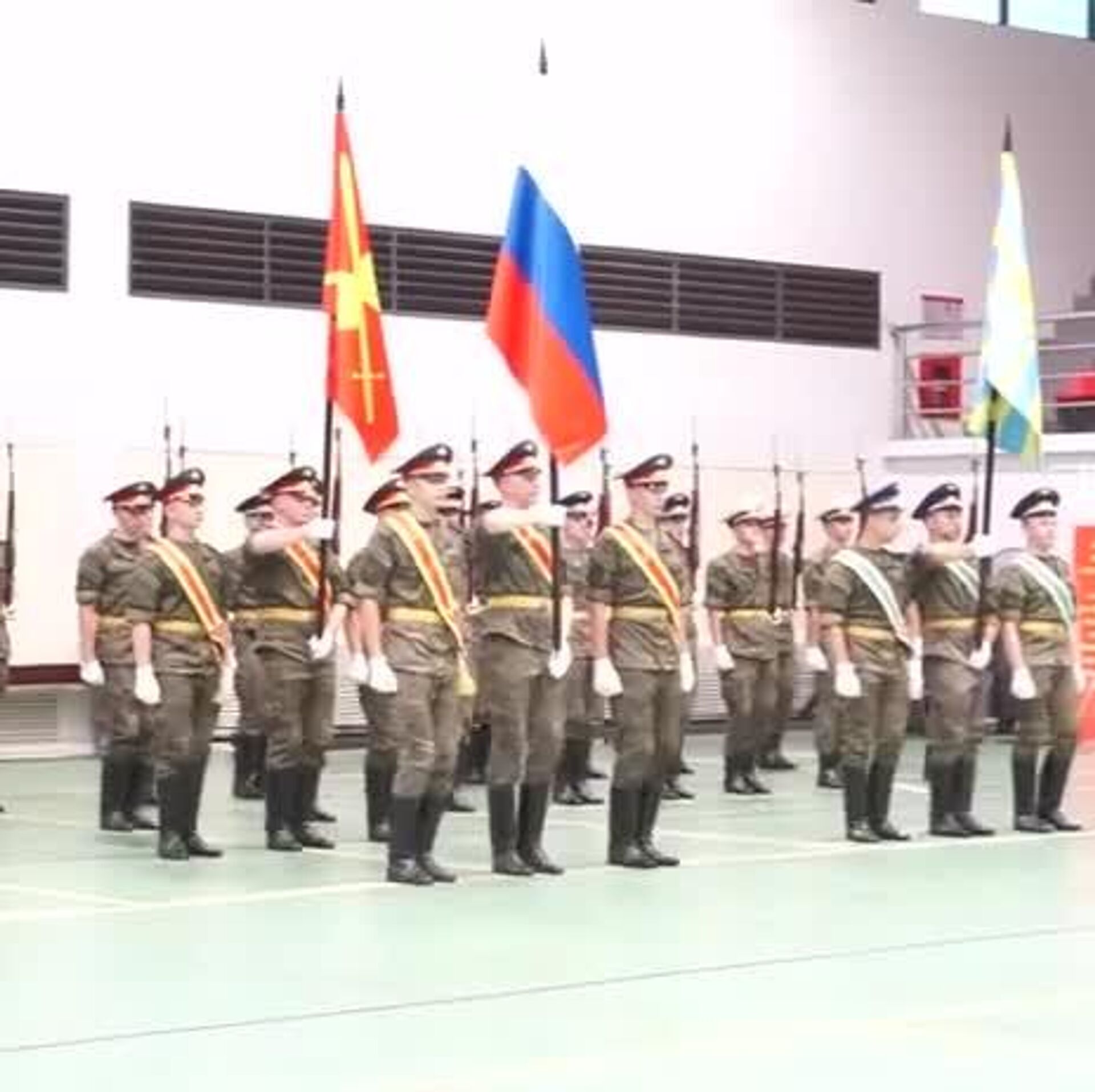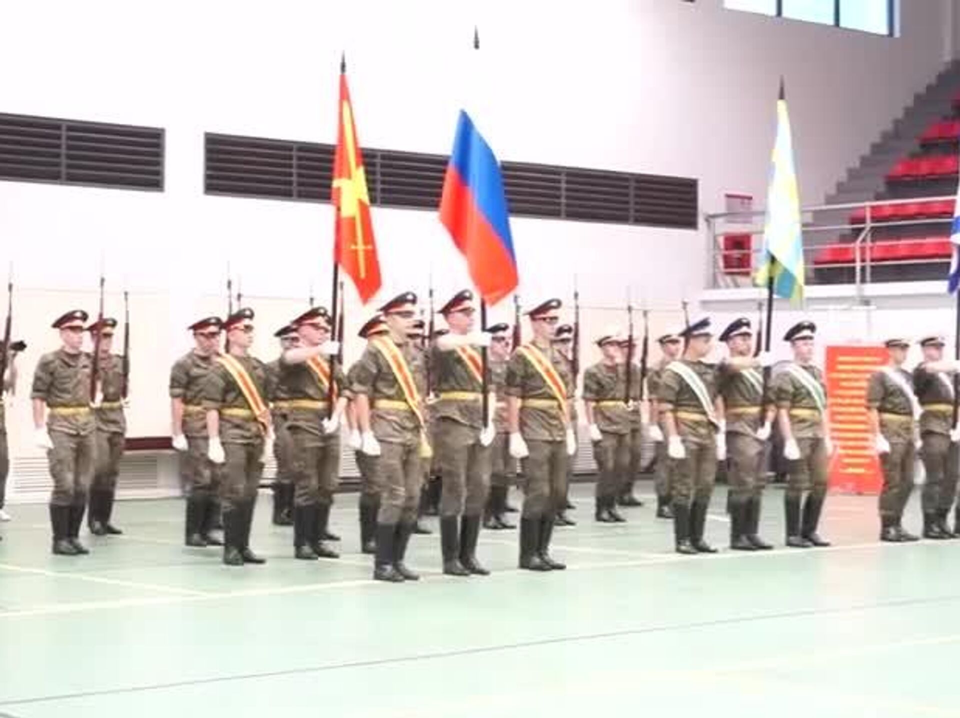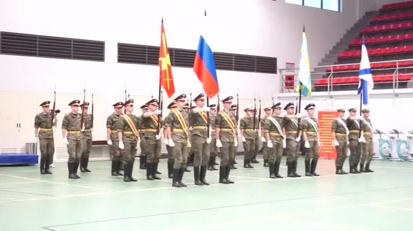 33 تن از نظامیان روسیه برای شرکت در رژه ویتنام که قرار است در تاریخ دوم سپتامبر برگزار شود با موسیقی محلی تمرینات نظامی شان را بر اساس دستورات انجام میدهند.