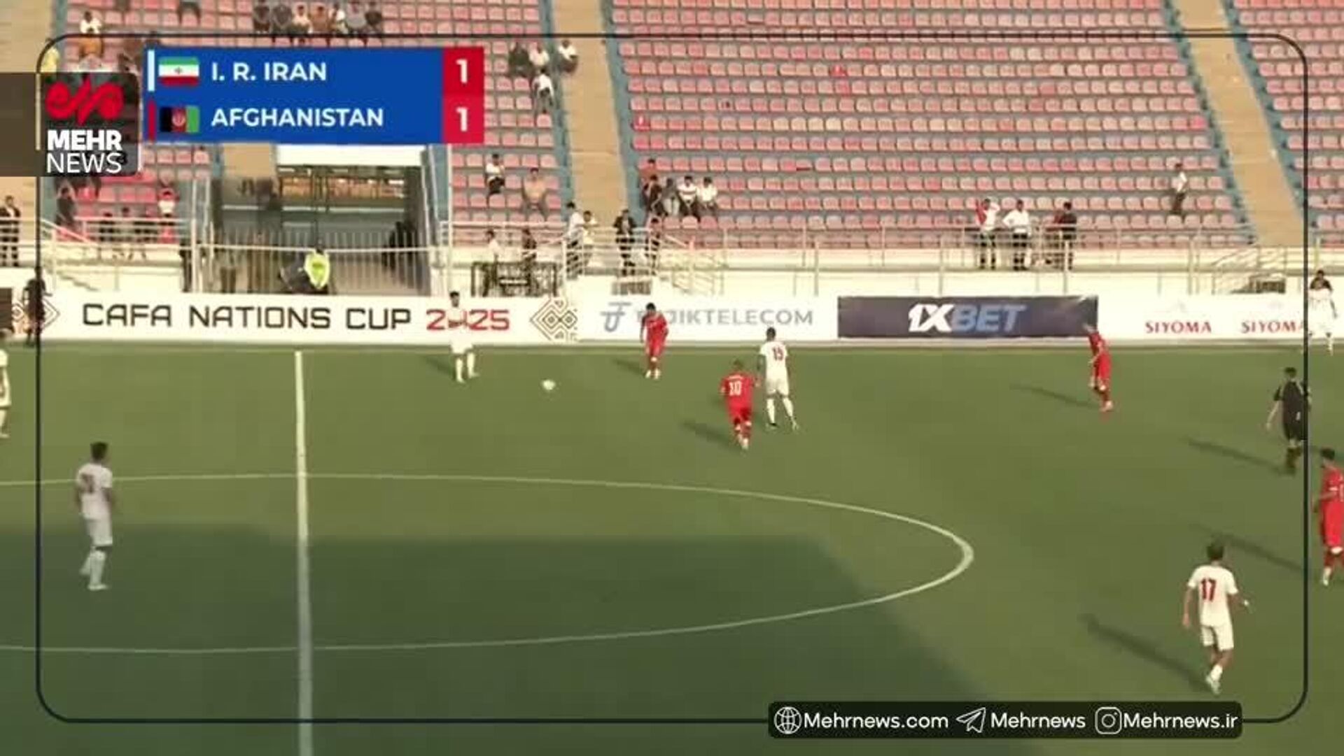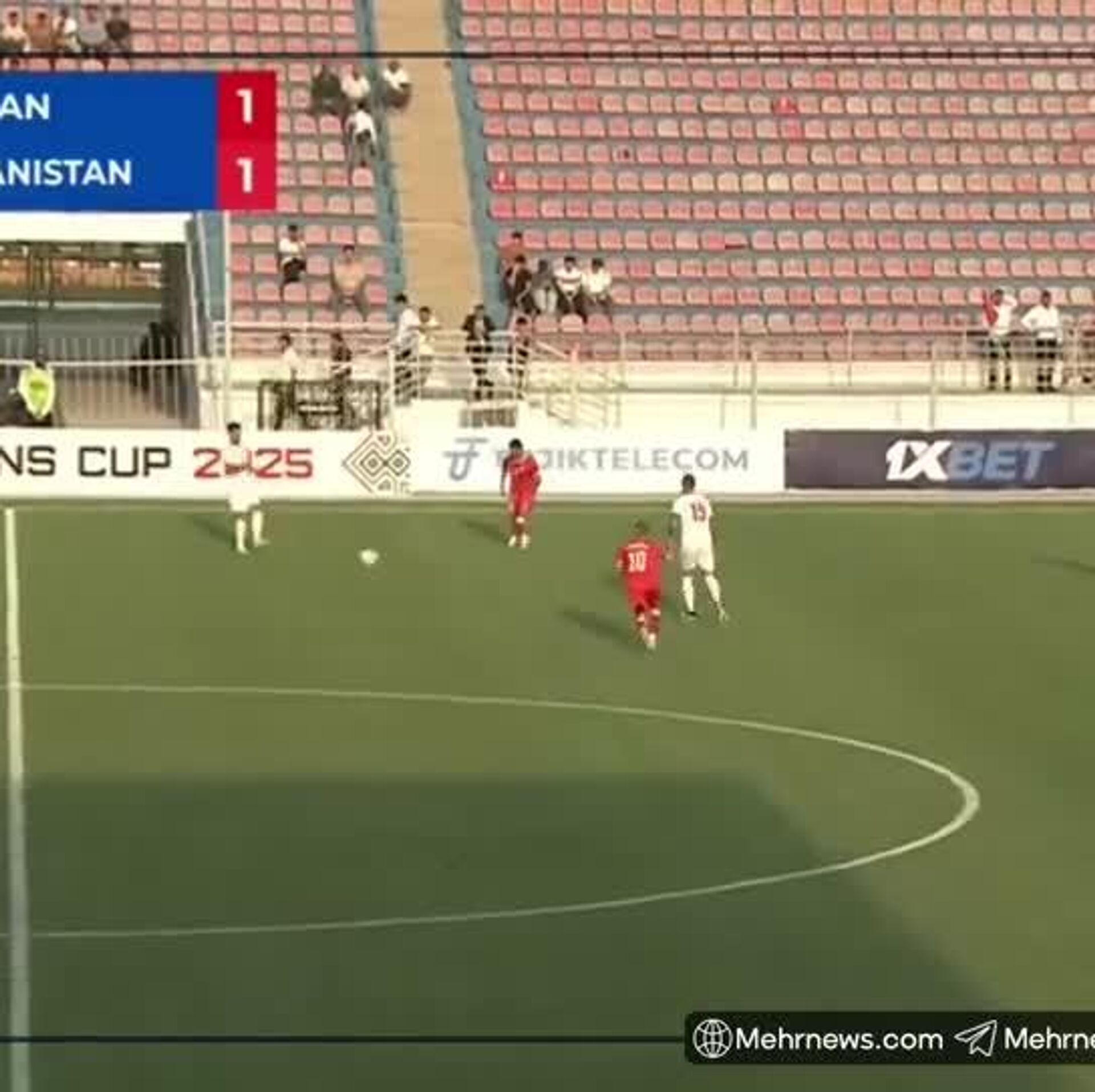 در تورنمنت کافا 2025 - گروه B - تاجیکستان امروز جمعه: 1404/06/07 ؛ ساعت 15:00 - به وقت مسکو، در ورزشگاه ملی تاجیکستان تا اکنون بازی میان تیم های افغانستان و ایران 2-1 به سود ایران جریان دارد.