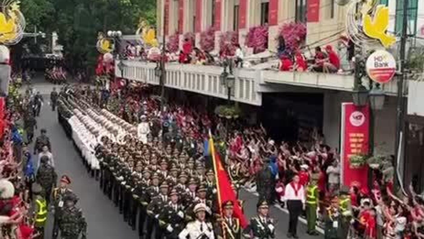 نیروهای نظامی چین در تمرین رژه بزرگداشت هشتادمین سالگرد روز ملی ویتنام شرکت کردند و آهنگ «گویا کاکا هو در روز پیروزی با ماست» را اجرا کردند.