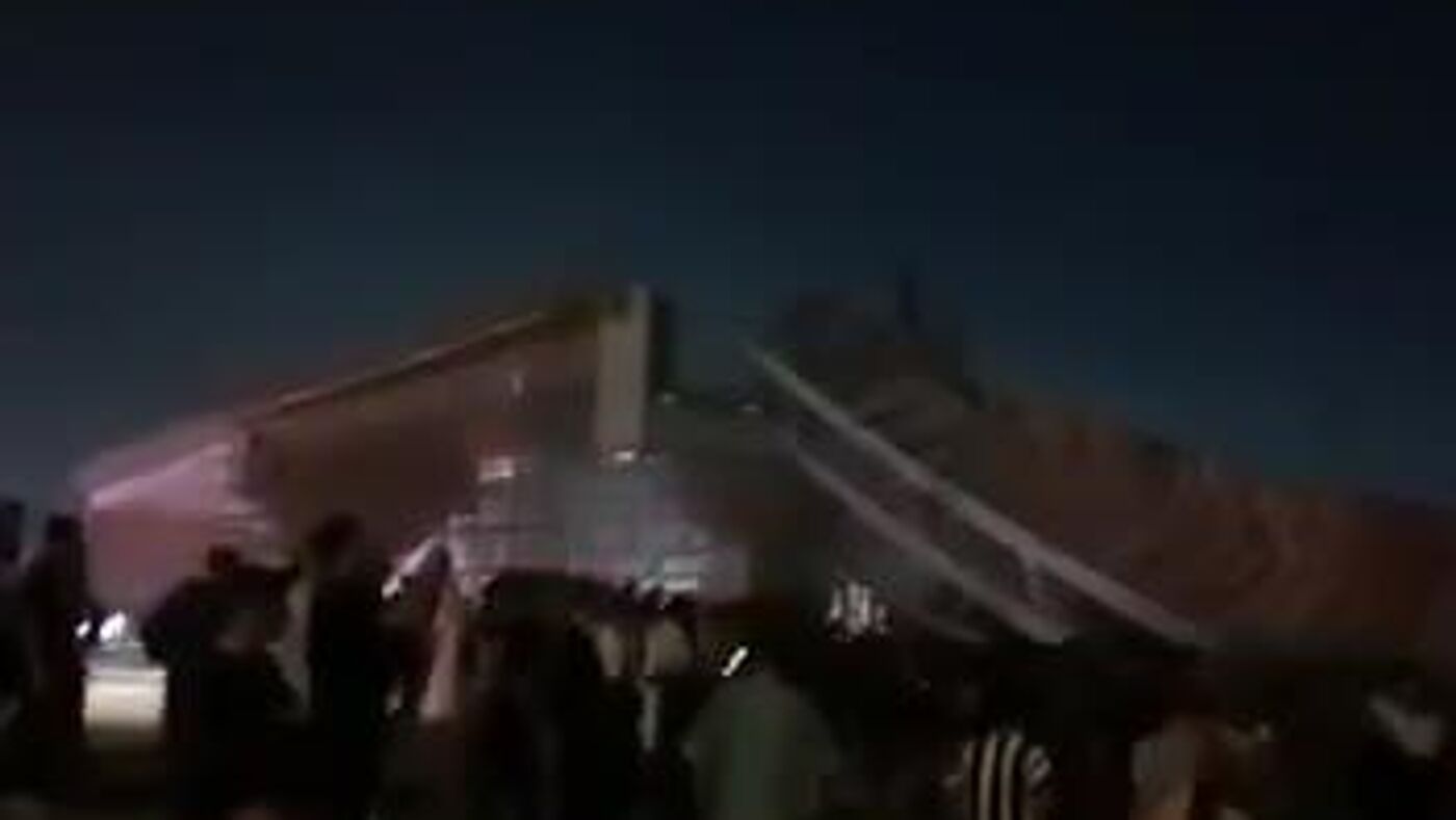نوارهای دیداری از فرو ریختن یک پل در حال ساخت در منطقه الحسینیه در پیرامون کربلا