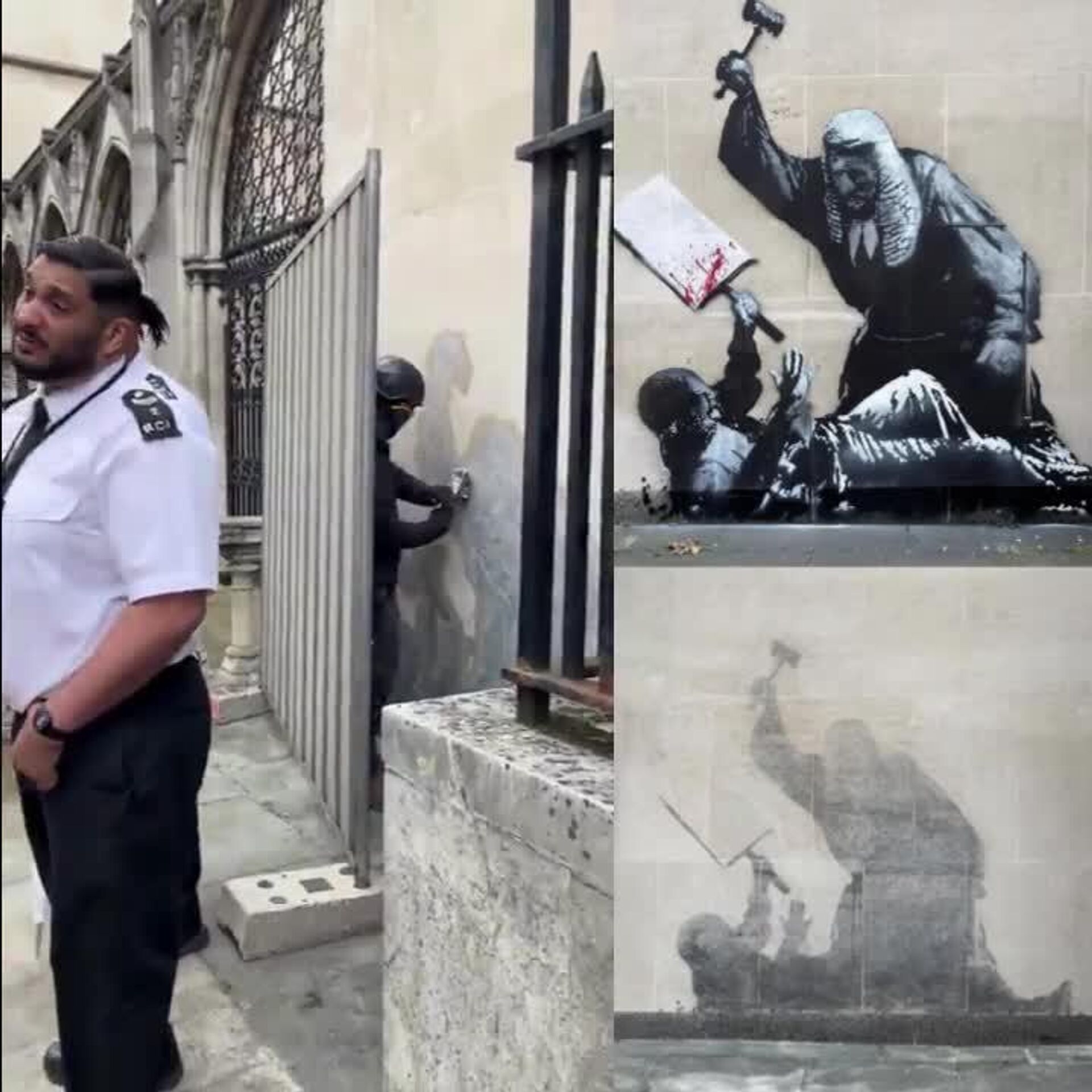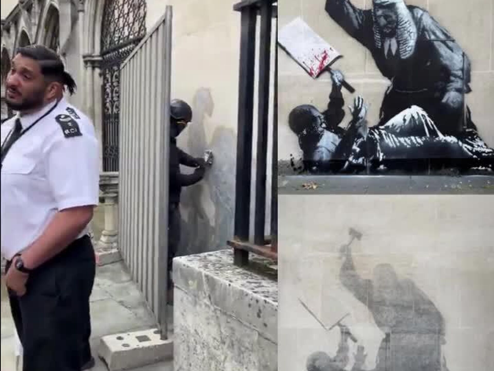 اسکای نیوز گزارش داد که تلاشی برای پاک کردن نقاشی بنکسی از ساختمان دادگاه سلطنتی لندن انجام شده است.