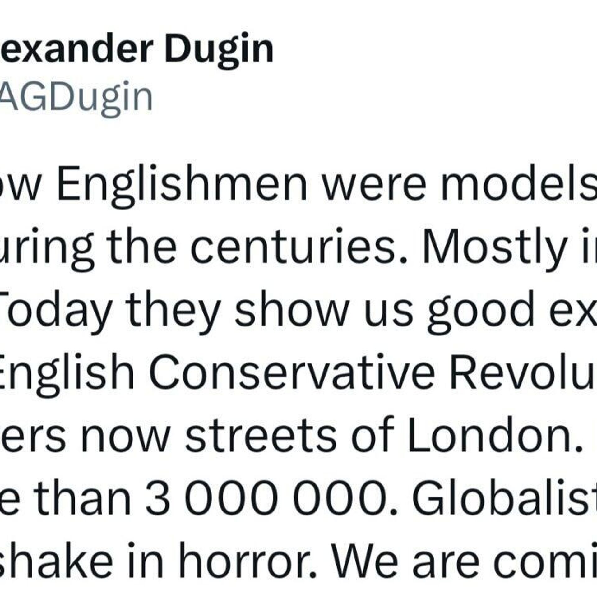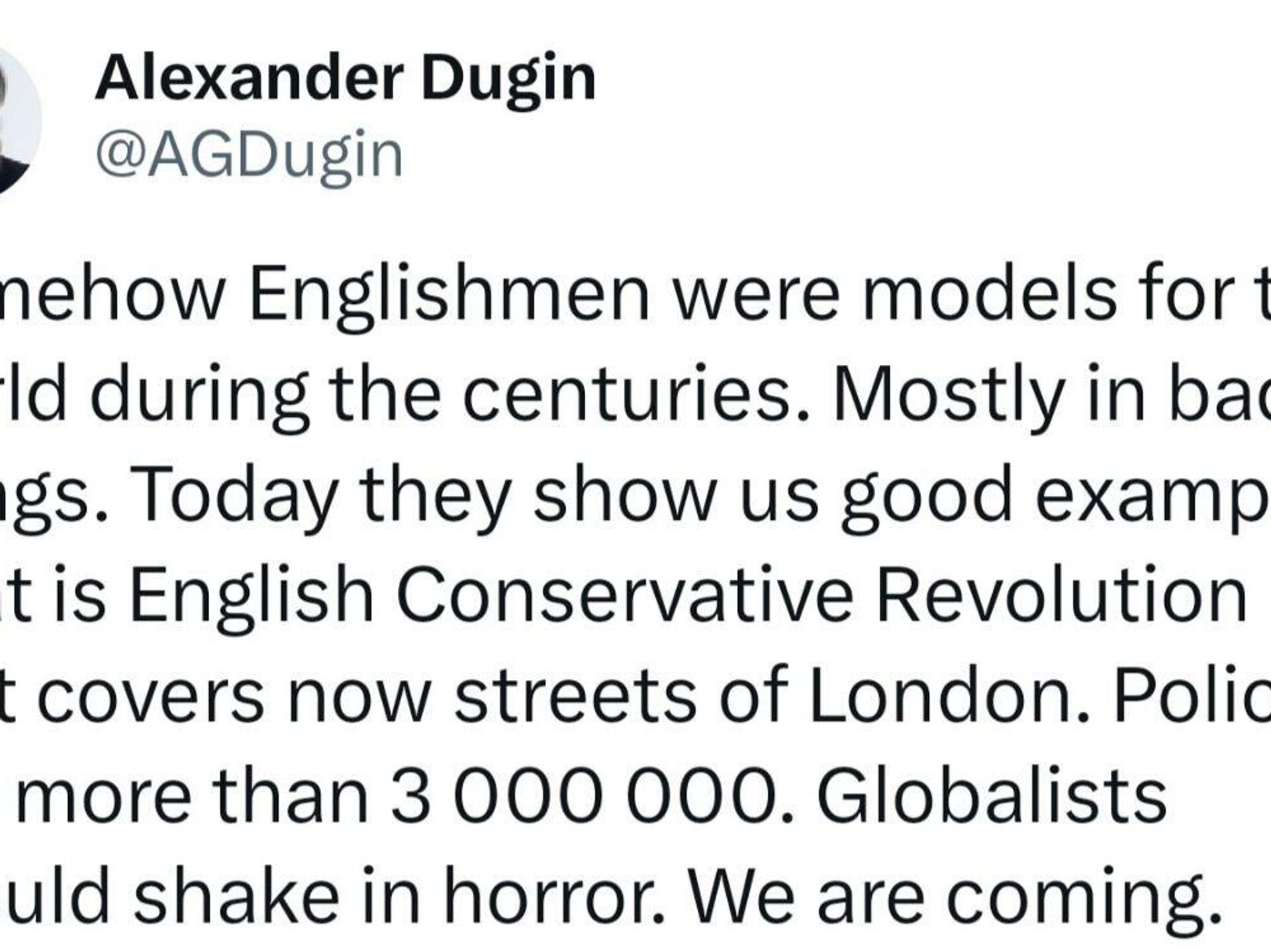الکساندر دوگین، فیلسوف مشهور روس، در واکنش به راهپیمایی هواداران راستگرا در لندن گفت: «در گذشته انگلیسیها یک نمونه بد بودند، اما امروز آنها یک نمونه خوب ارائه میدهند».