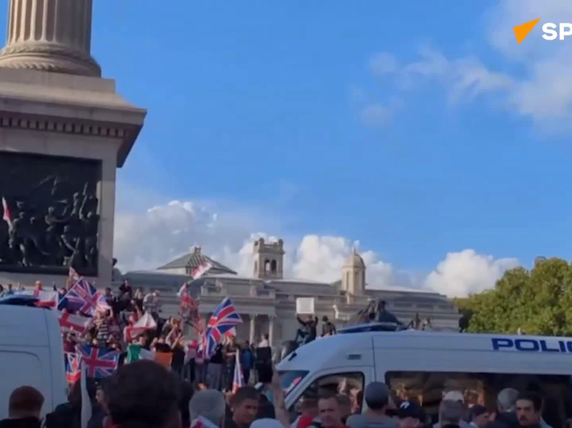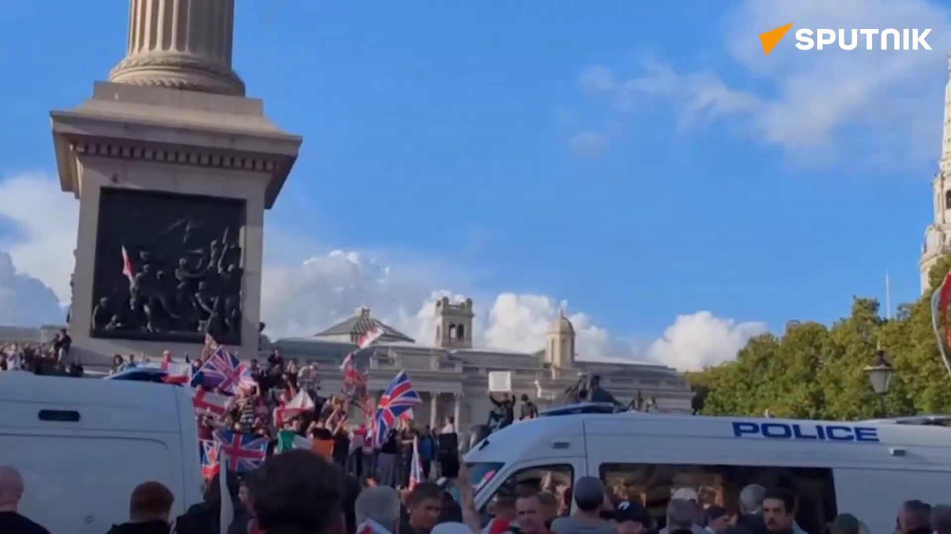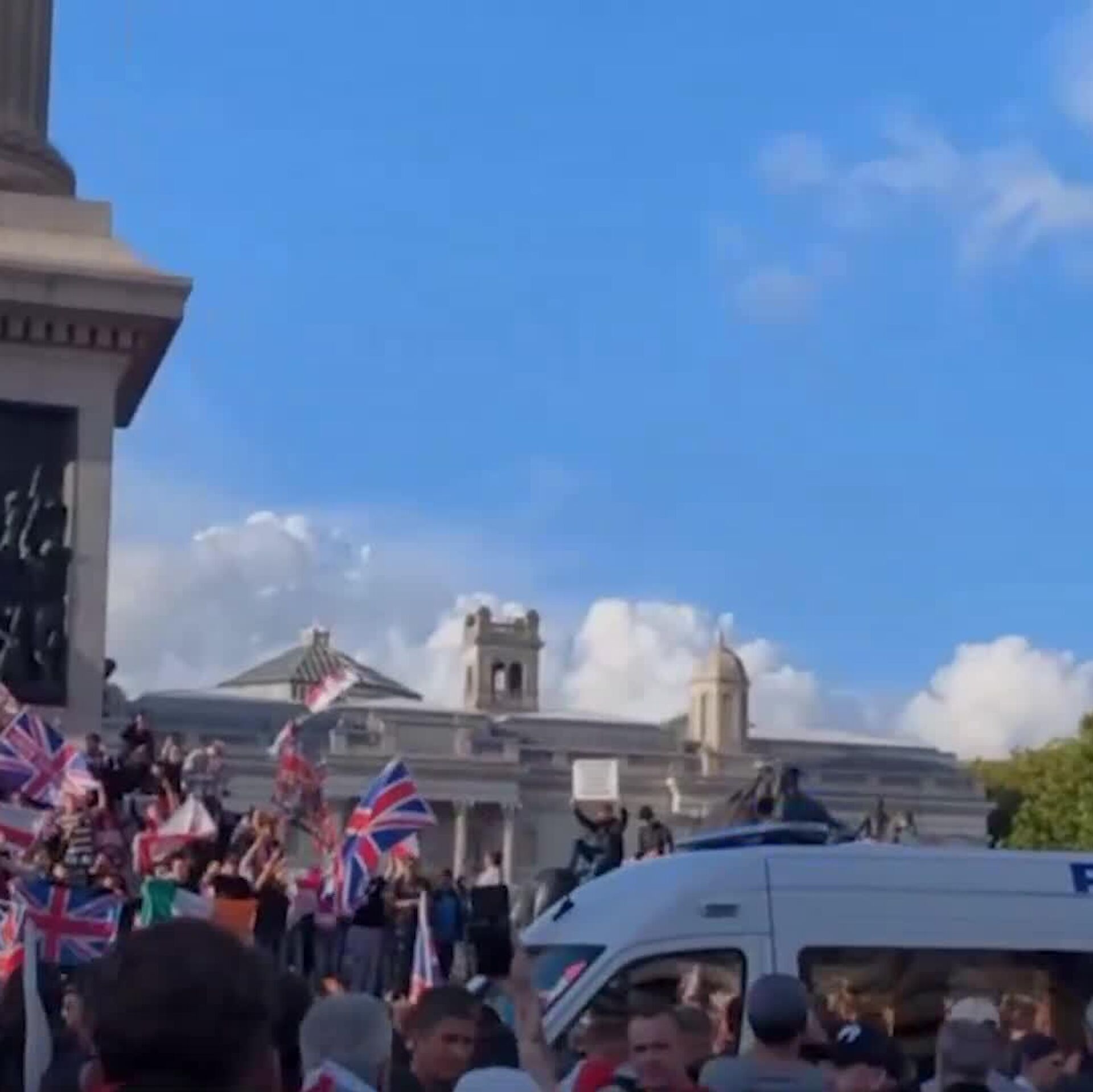 فعالان راستگرا از ستون نلسون در مرکز لندن بالا رفته و این بنای یادبود نمادین را تصرف کردهاند.