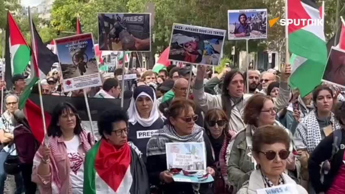 نوارهای دیداری خبرنگار اسپوتنیک از راهپیمایی طرفداران فلسطین در پاریس