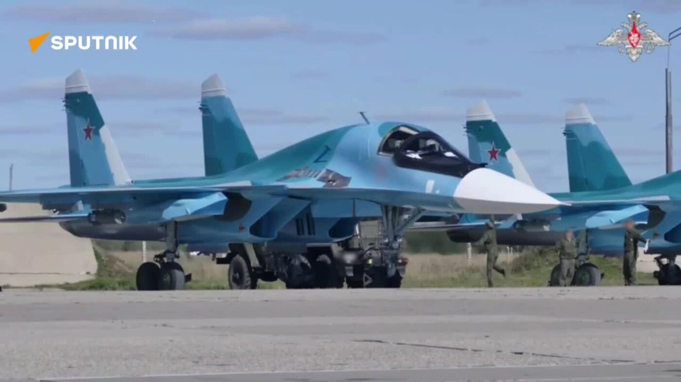خدمه جنگندههای سوخو-34 نیروهای هوافضا روسیه به عنوان بخشی از رزمایش غرب-2025، یک حمله بمباران را تمرین کردند.