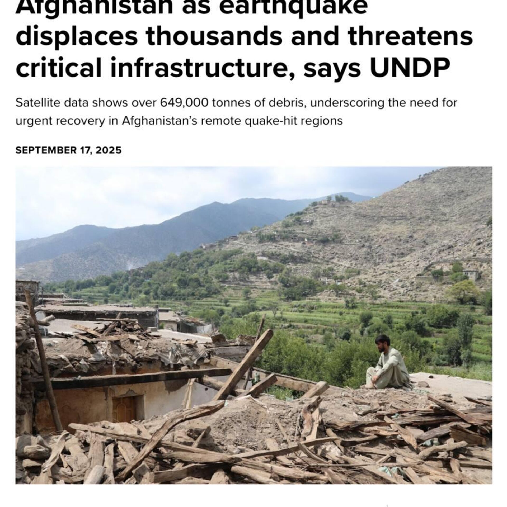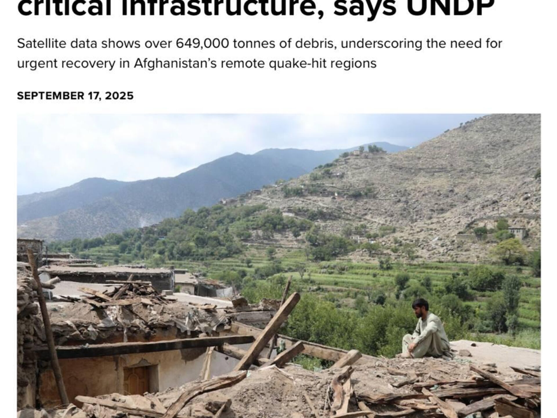 برنامهی توسعه سازمان ملل متحد، در گزارش این نهاد که دیروز (چهارشنبه، 26 سنبله) نشر شده، آمده است که این مقدار آوار معادل 40 هزار و 500 کامیون بار است.