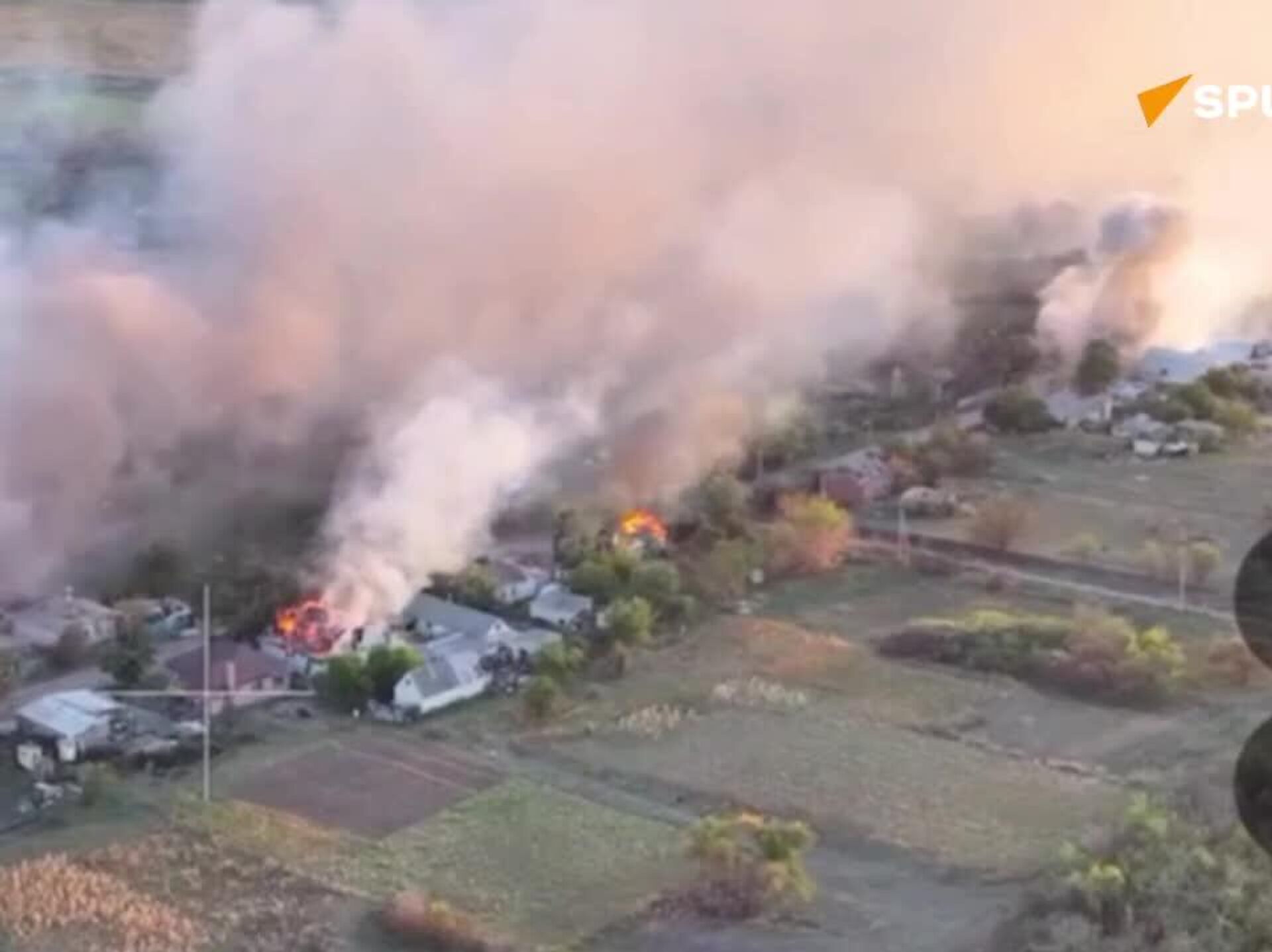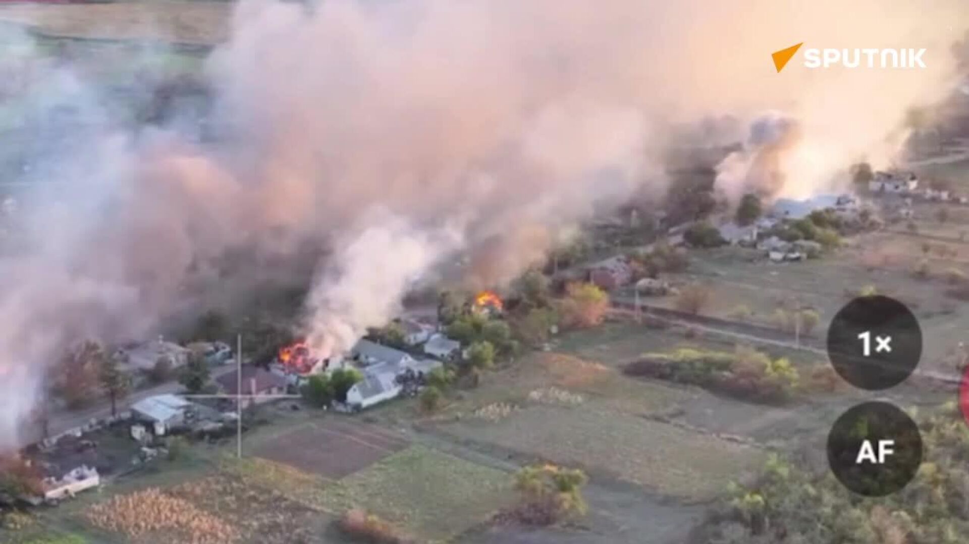 این ویدئو توسط یک پهپاد روسی در روستای شاندریگولووو ضبط شده است. تصاویر نشان میدهد که هواپیماهای تهاجمی روسیه در تلاشند تا شهروند غیرنظامی را به مکانی امن اسکورت کنند، در حالی که یک پهپاد انتحاری اوکراینی به زن میرسد و با دقت از پشت به او ضربه میزند.