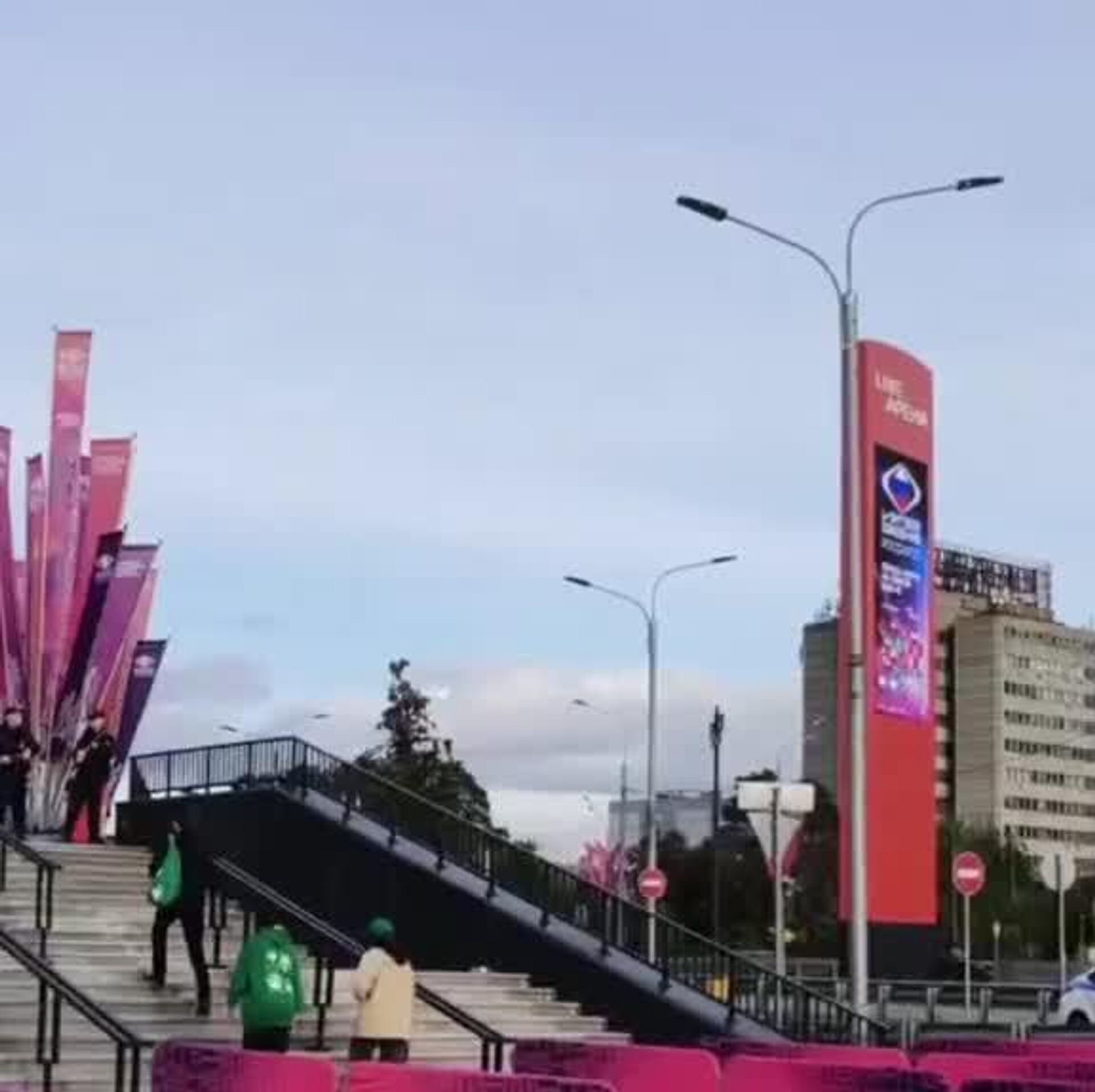 خبرنگار اسپوتنیک: ماموران انتظامی پیش از آغاز مسابقه آواز اینترویژن، در حال برقراری نظم در پیرامون سالن «لایو آرنا» در مسکو هستند.