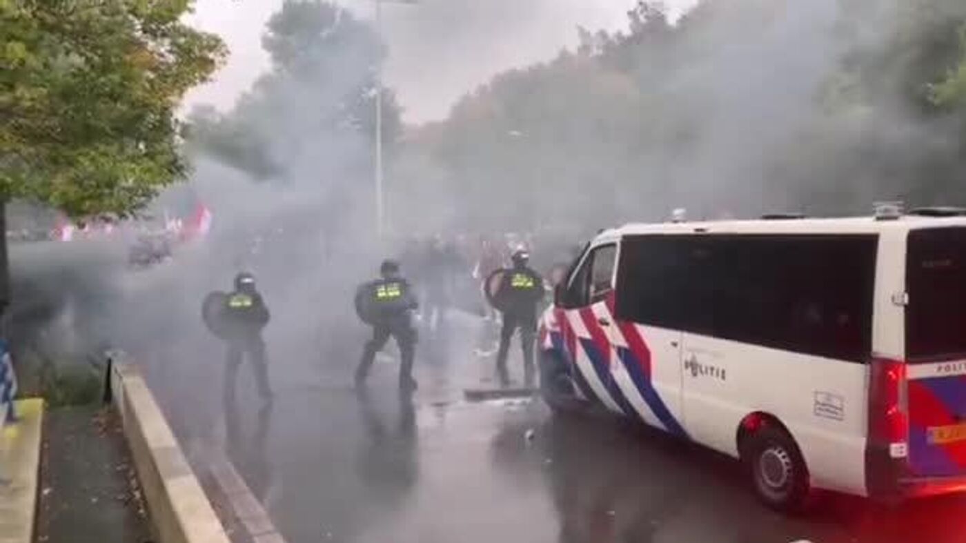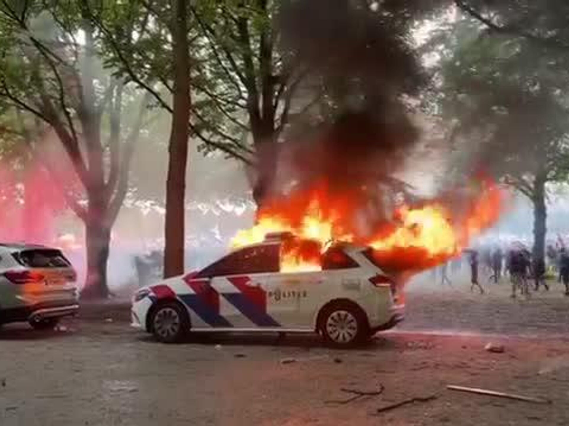 پولیس مسلح به چوب دنده ای برقی روز شنبه با معترضان مهاجم در لاهه درگیر شد و آنها را دستگیر کرد. اعتراض در برابر سیاست مهاجرتی هالند هنگامی به خشونت کشیده شد که راهپیمایان بزرگراه A12 را بسته کردند.
