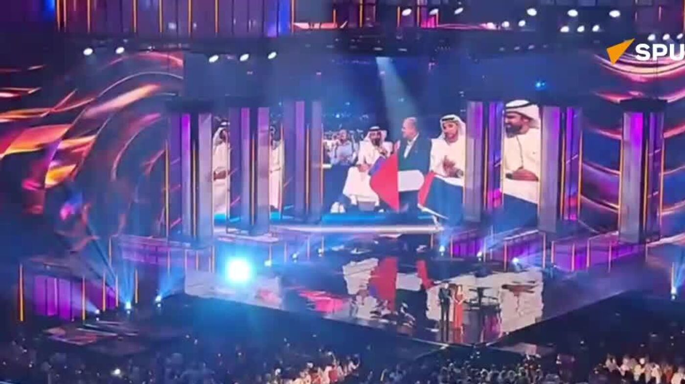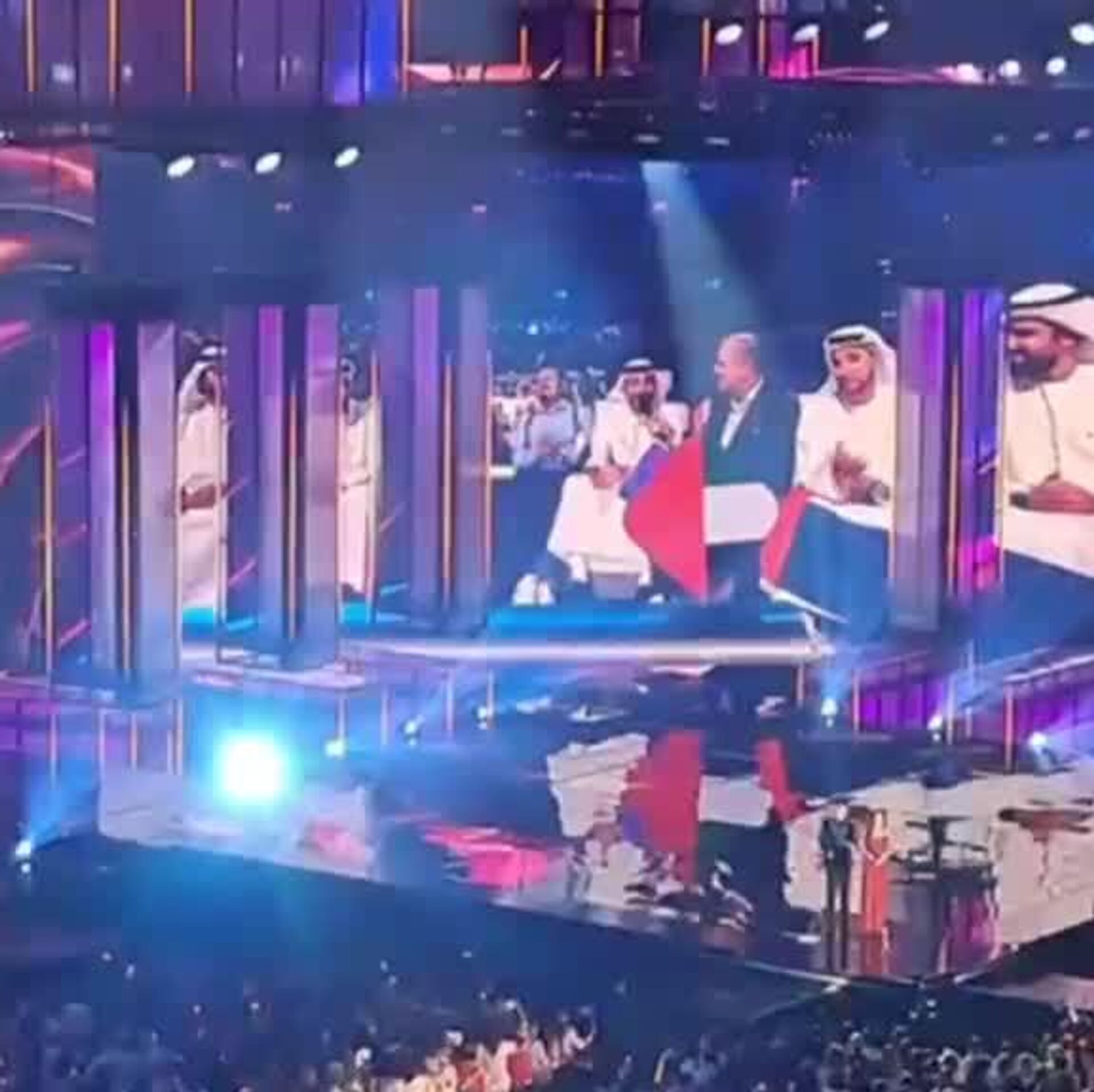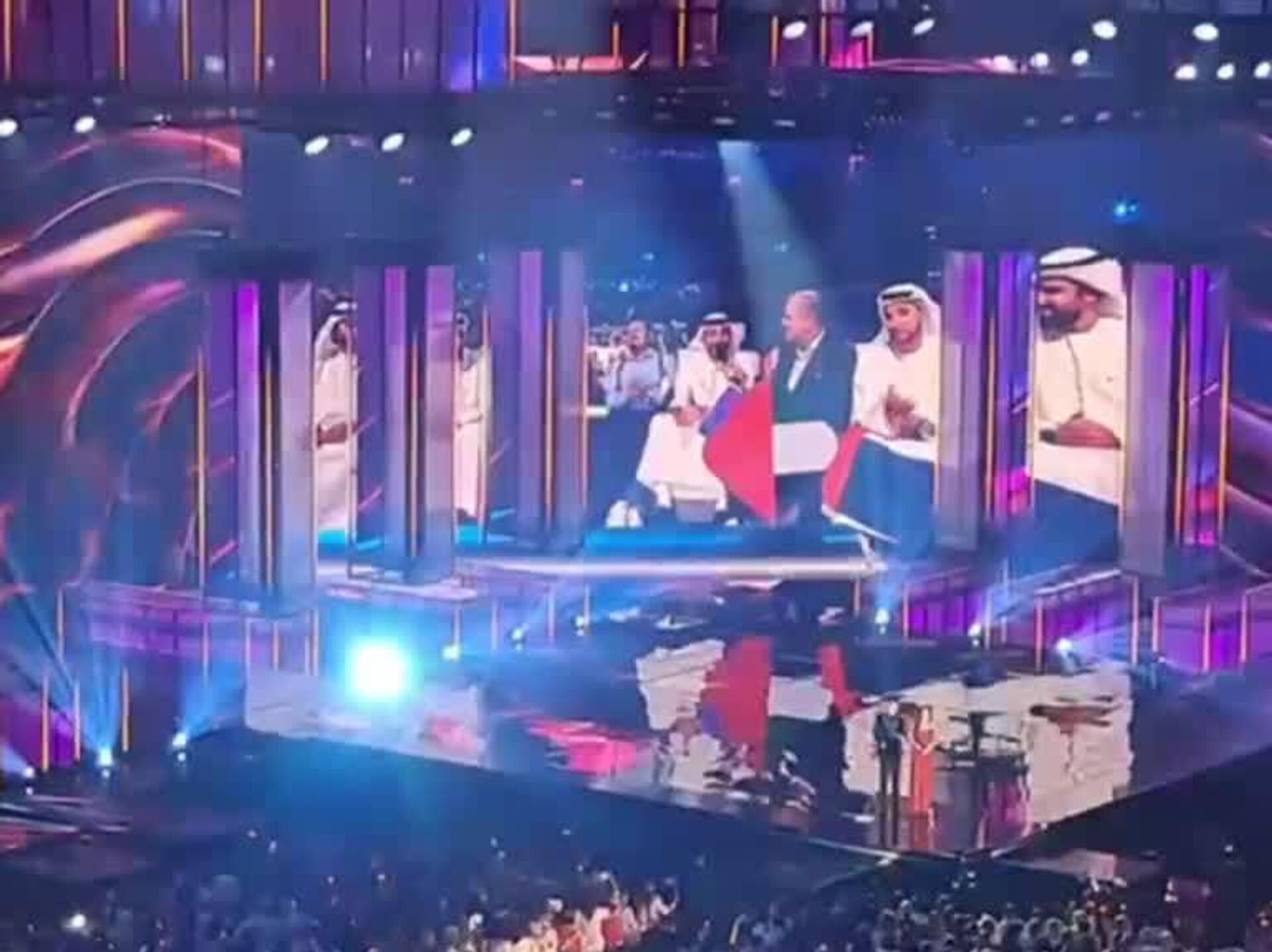 سیف العلی، خواننده اماراتی، آهنگ کالینکا-مالینکا را به زبان روسی خواند و حاضران در سالن نیز با او همراه شدند