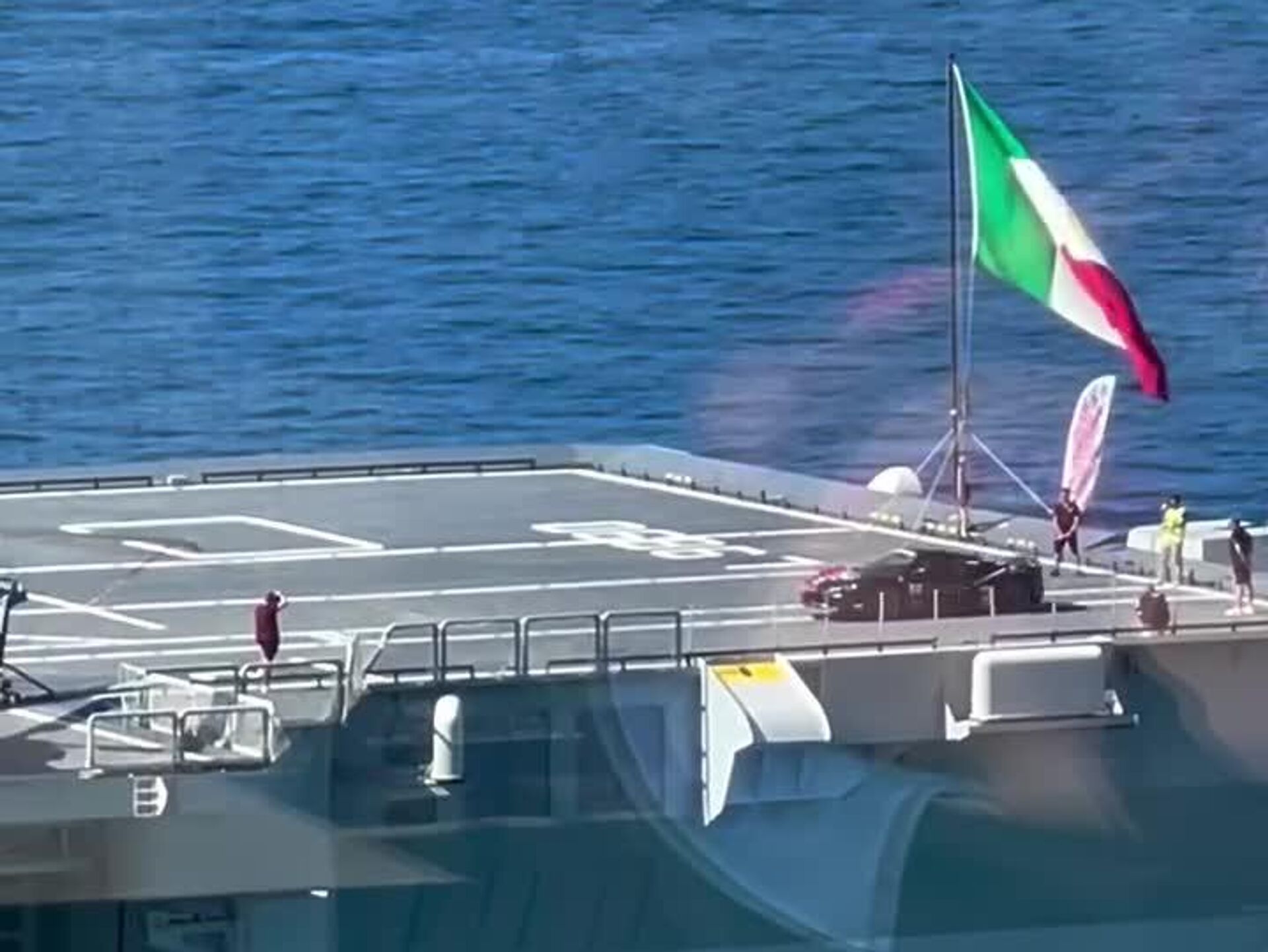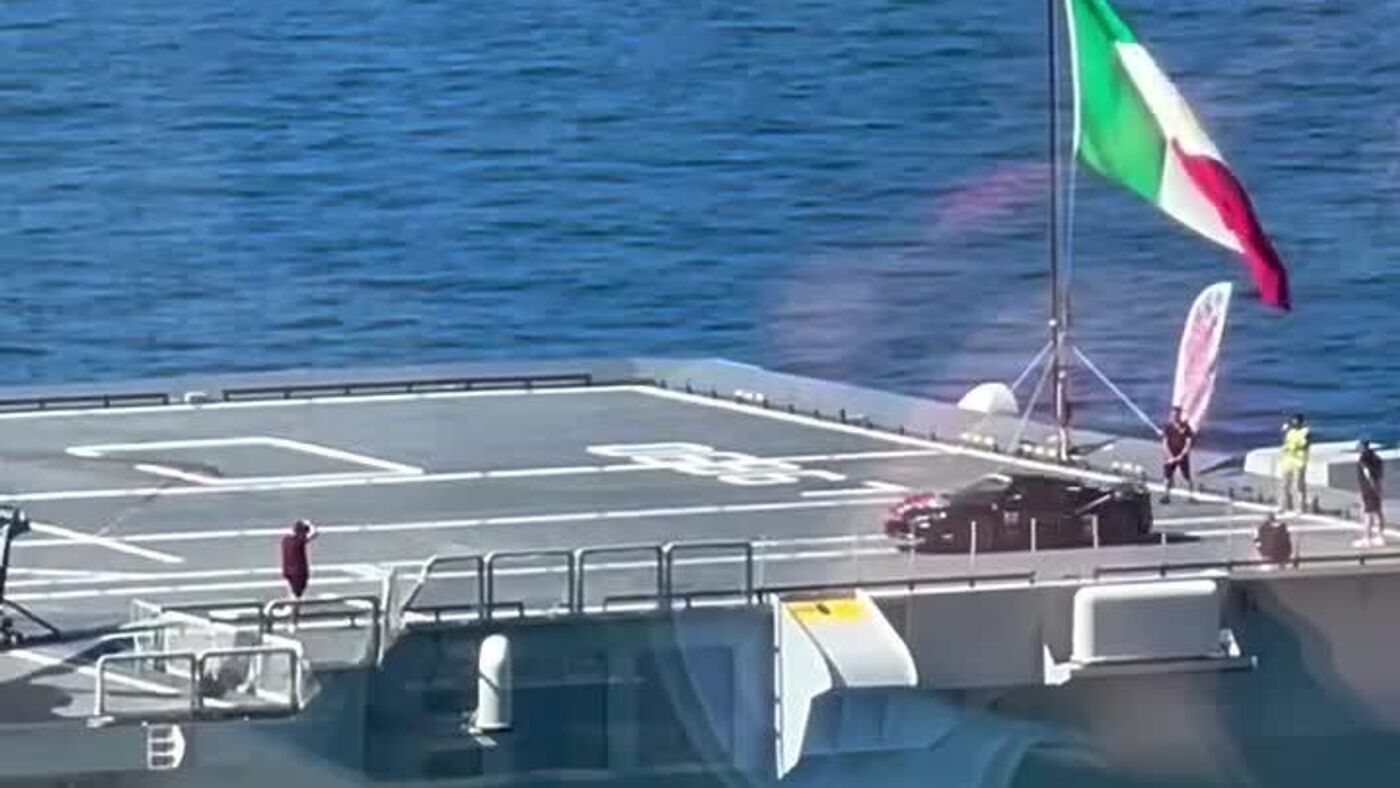 راننده، فراری SF90 خود را به سرعت 164 کیلومتر در ساعت رساند و رکورد جدیدی را برای کشتی ثبت کرد. جمعیتی از هواداران مشتاق، عملکرد فابیو را در بندر چیویتاوکیا تماشا کردند.