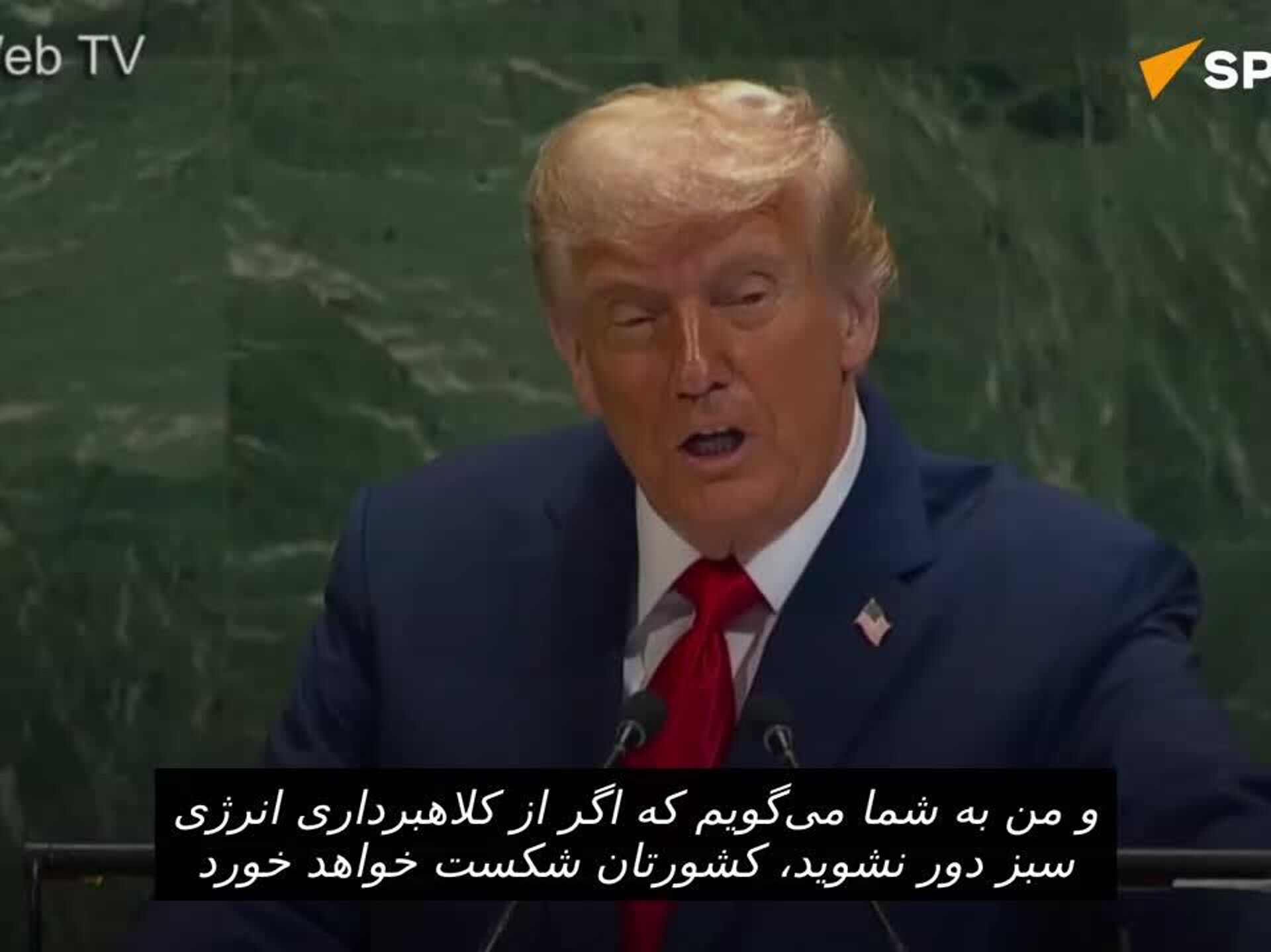 19:48 23.09.2025 (بازآوری شدن: 20:10 23.09.2025) ترامپ در مجمع عمومی سازمان ملل: انرژی سبز یک کلاهبرداری است