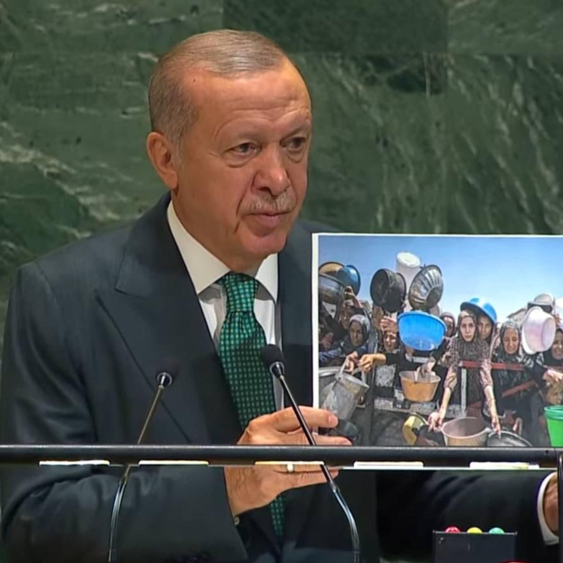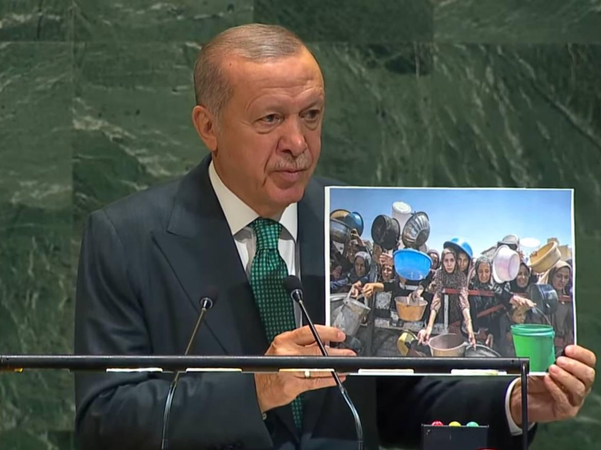 اردوغان نگاره ای از زنان نوار غزه را در مجمع عمومی سازمان ملل نشان داد