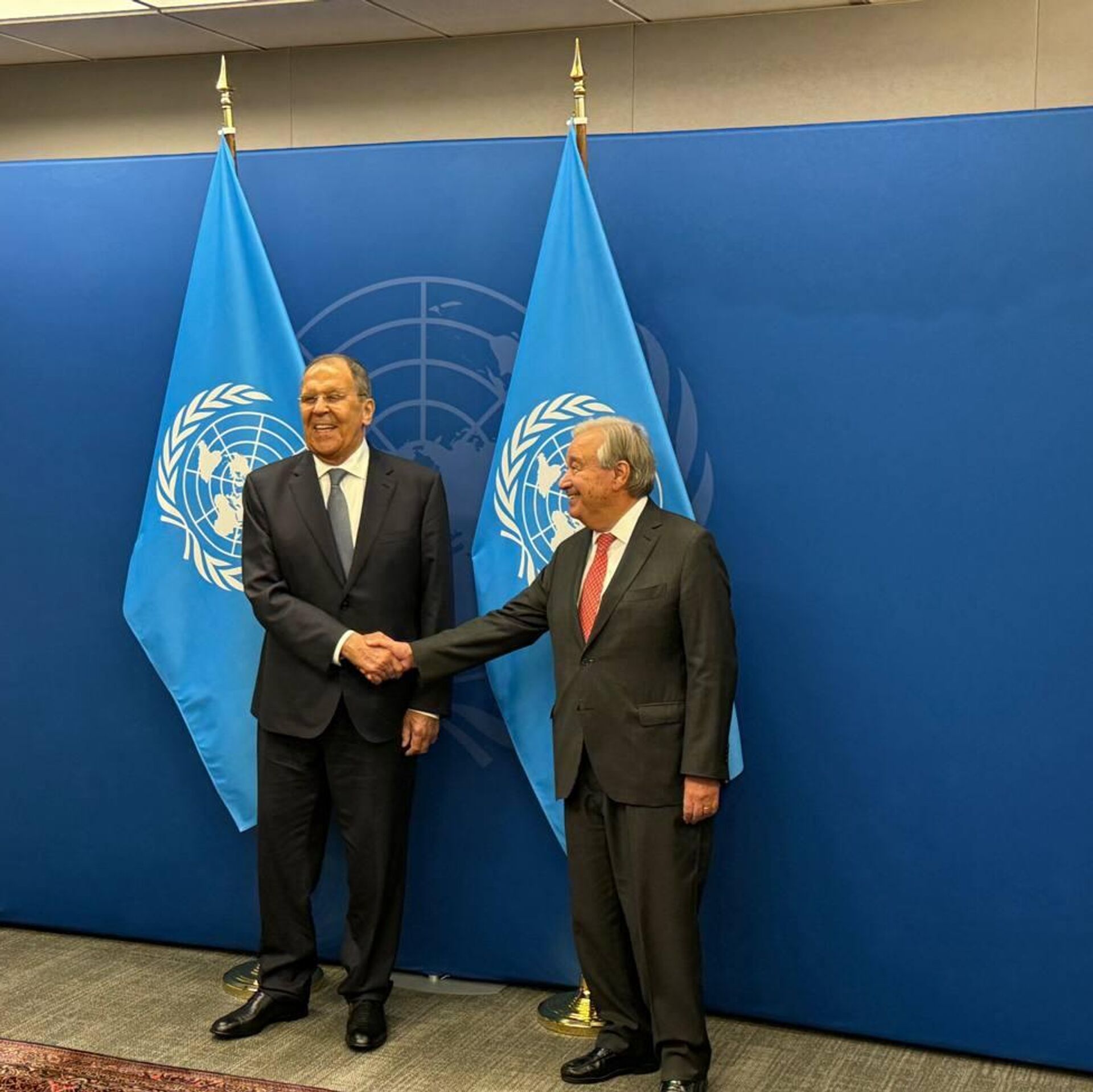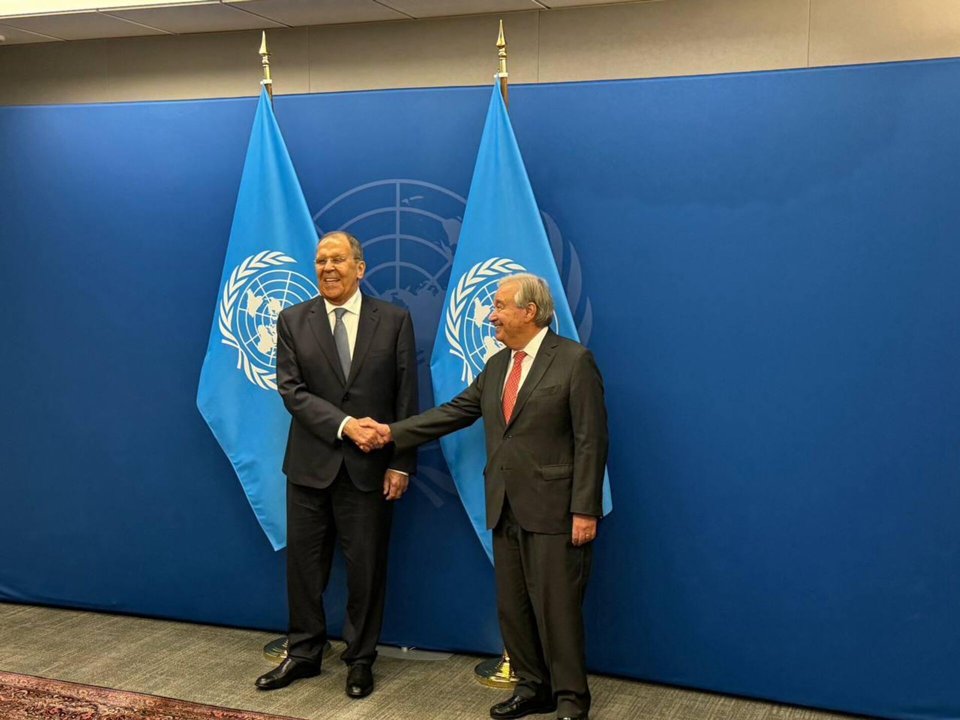 ◻پیش از این، خبرنگار اسپوتنیک گزارش داده بود که لاوروف با گوترش دیدار کرده است. وزارت امور خارجه روسیه نیز گزارش داده بود که لاوروف در مورد مسائل بینالمللی از جمله وضعیت اوکراین و منطقه درگیری فلسطین و اسرائیل با گوترش گفتگو کرده است.