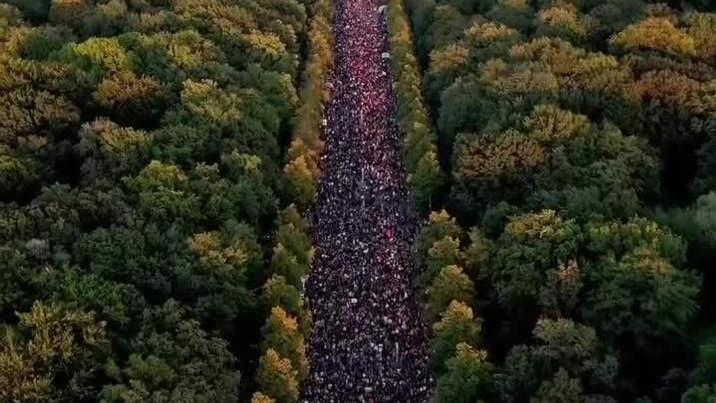 نمای هوایی تظاهرات هزاران نفری حمایت از فلسطین در آلمان