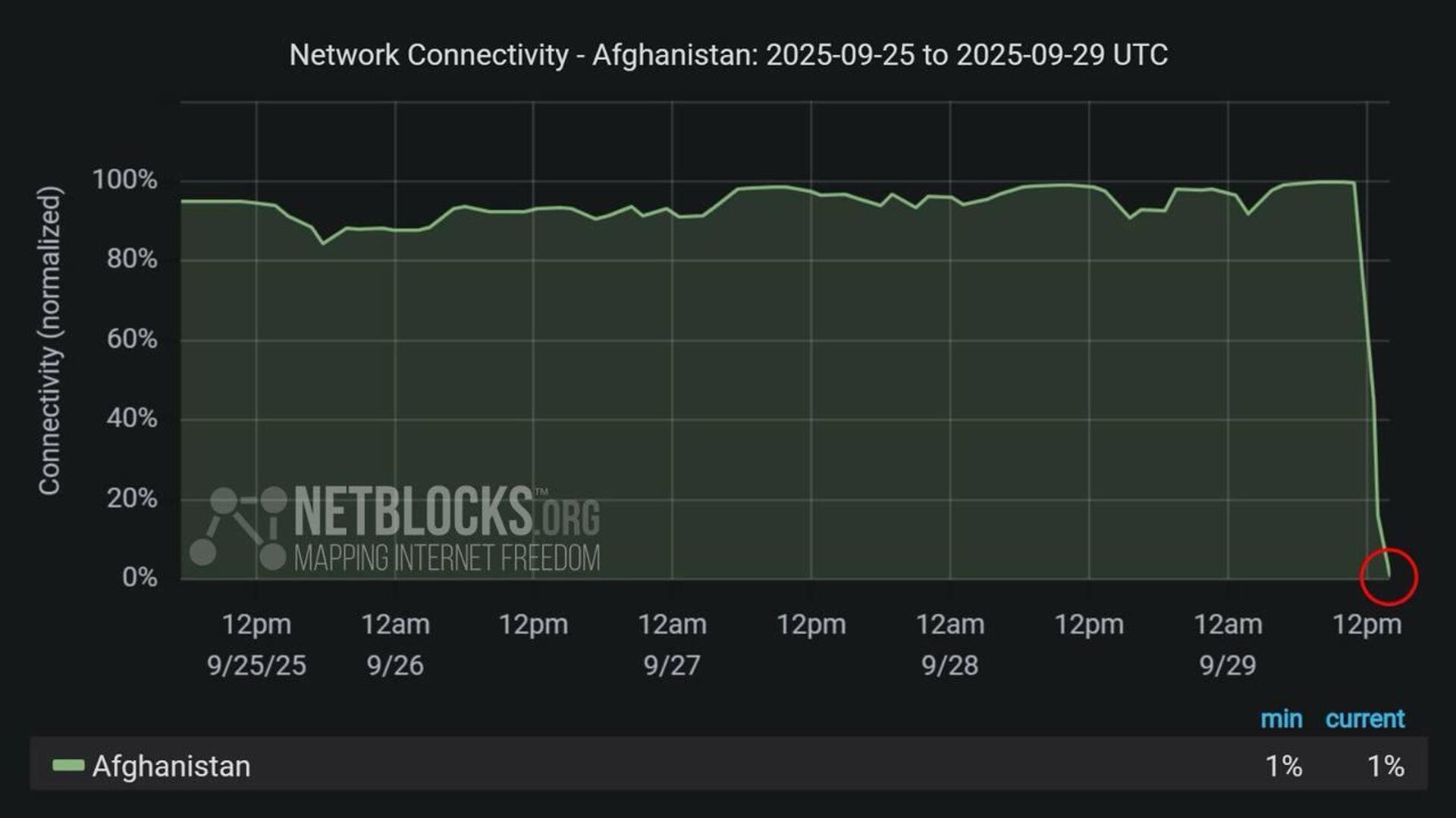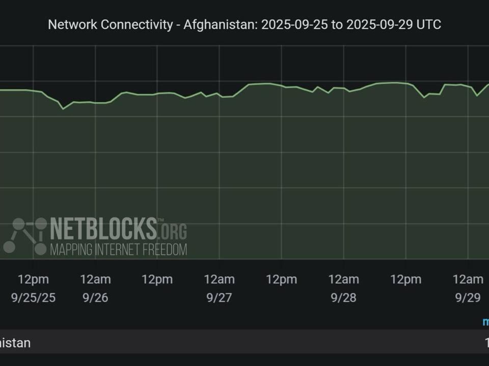 ◻سازمان «نتبلاکس» که مسؤول امنیت سایبری و نظارت بر اینترنت است گفته است که «در حال حاضر، یک قطعی سراسری در خدمات مخابراتی در سراسر افغانستان رخ داده است».
