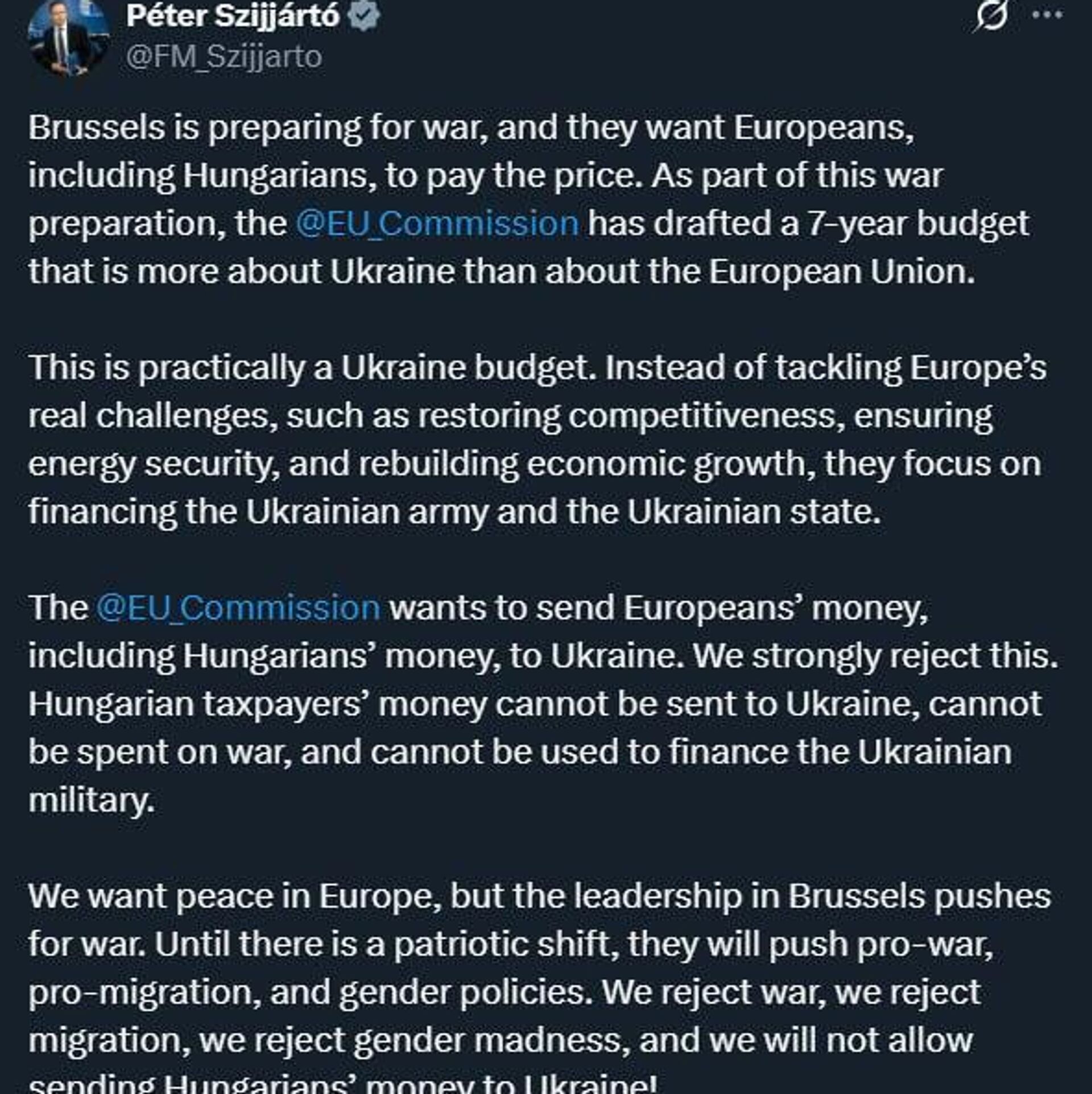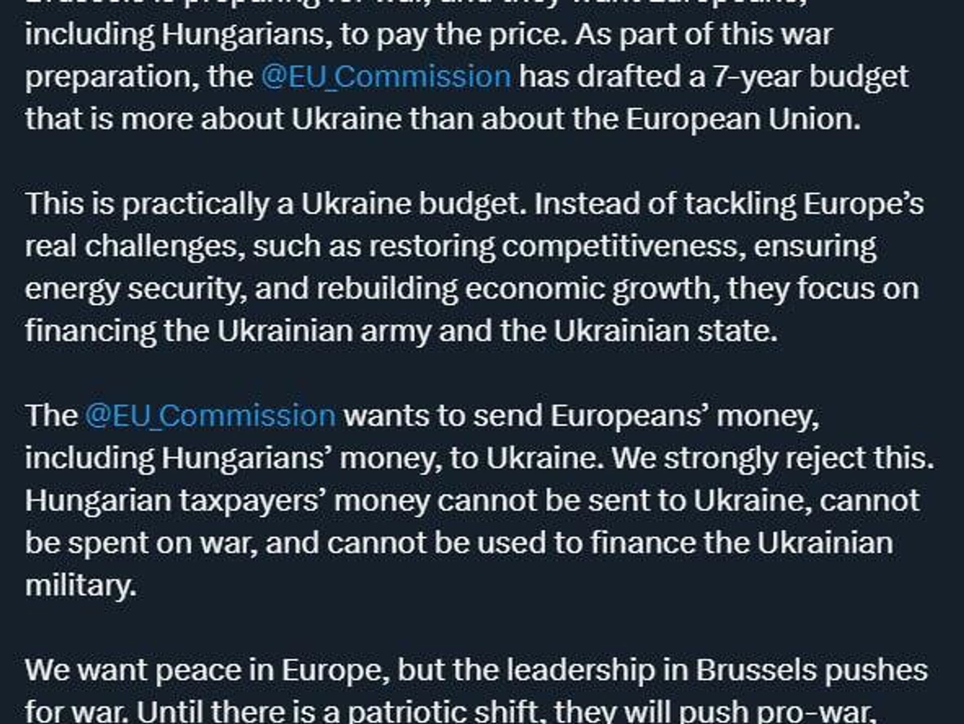 «به عنوان بخشی از این آمادگی برای جنگ، کمیسیون اتحادیه اروپا بودجهای 7 ساله را تدوین کرده است که بیشتر درباره اوکراین است تا اتحادیه اروپا. این عملاً بودجه اوکراین است.»