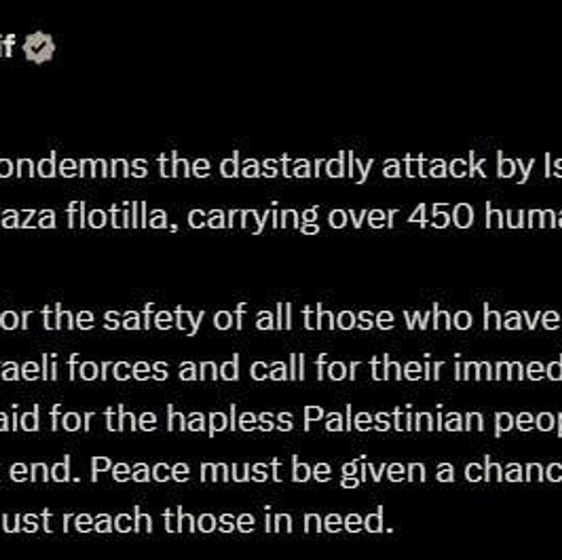 من خواستار آزادی فوری همه فعالان و داوطلبان مالزیایی و بین المللی هستم! این یک ماموریت بشردوستانه است که شهروندان غیر مسلح را همراه با کمک هایی که مردم غزه به شدت به آن نیاز دارند، حمل می کند.