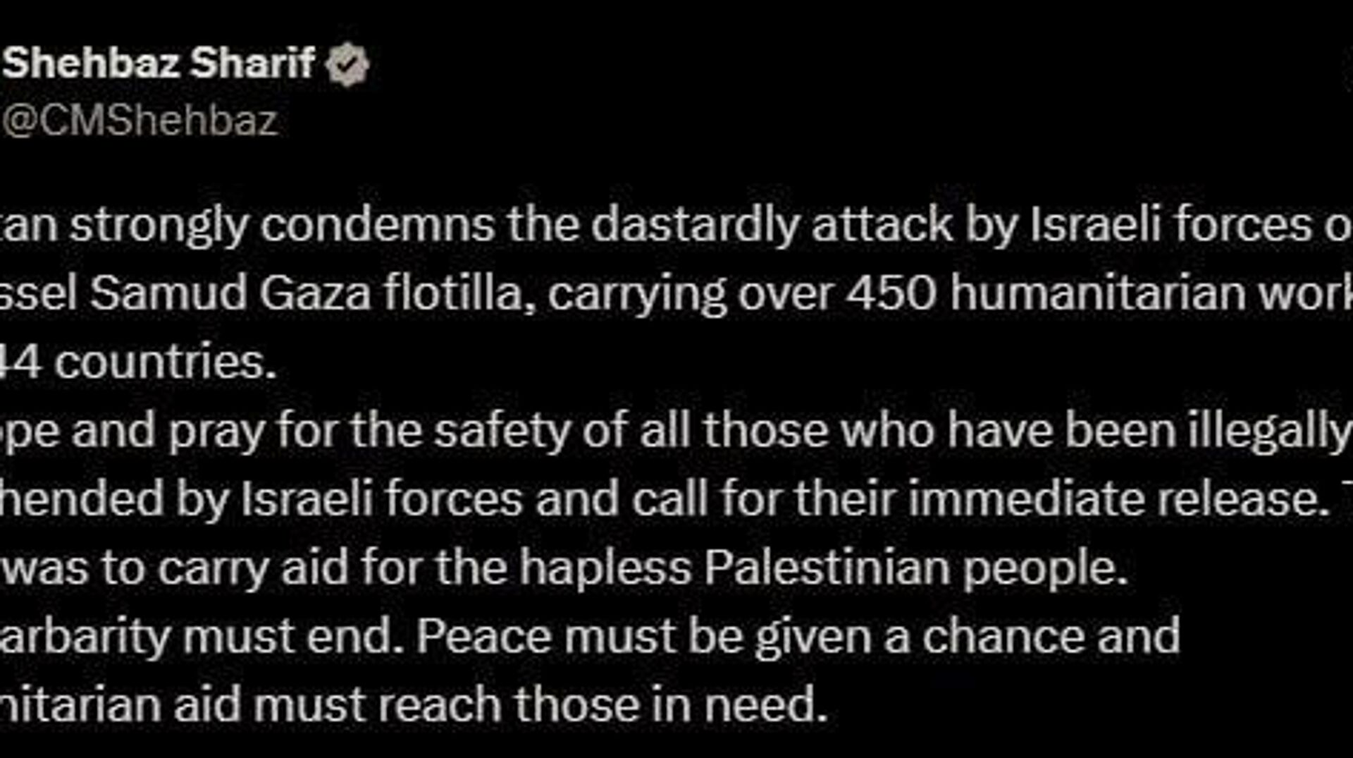 درعین حال، شهباز شریف نخست وزیر پاکستان نیز در واکنش به اقدام اسرائیل در ایکس نوشته است: