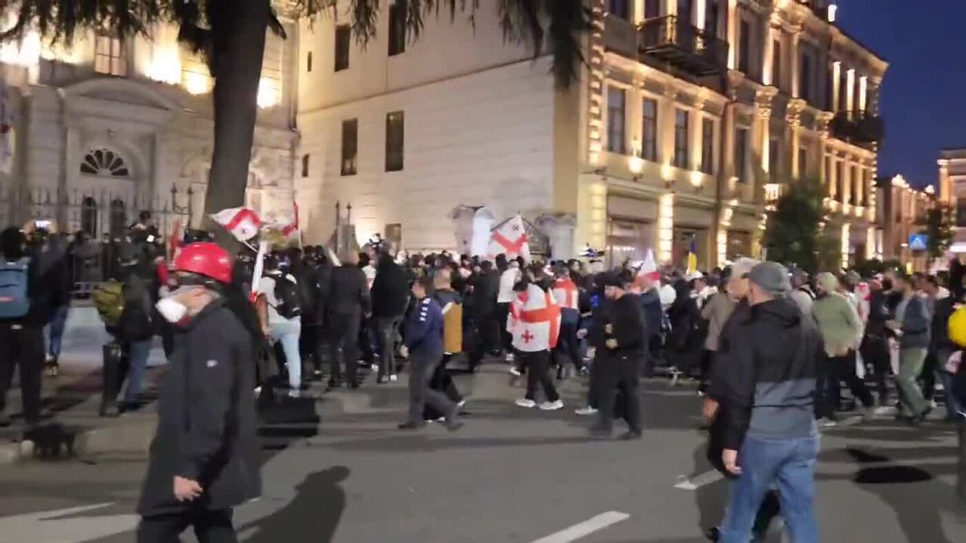 خبرنگار اسپوتنیک هم گزارش میدهد، که تیپهای بیشتری از نیروهای ویژه در نزدیکی کاخ ریاست جمهوری گرجستان بسیج شدهاند، جایی که معترضان از موانع آهنی گذشته اند.