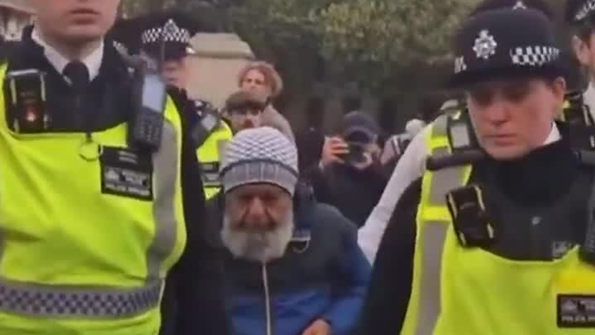 پلیس بریتانیا در جریان اعتراضات لندن در حمایت از غزه یک مرد مسن را دستگیر کرد