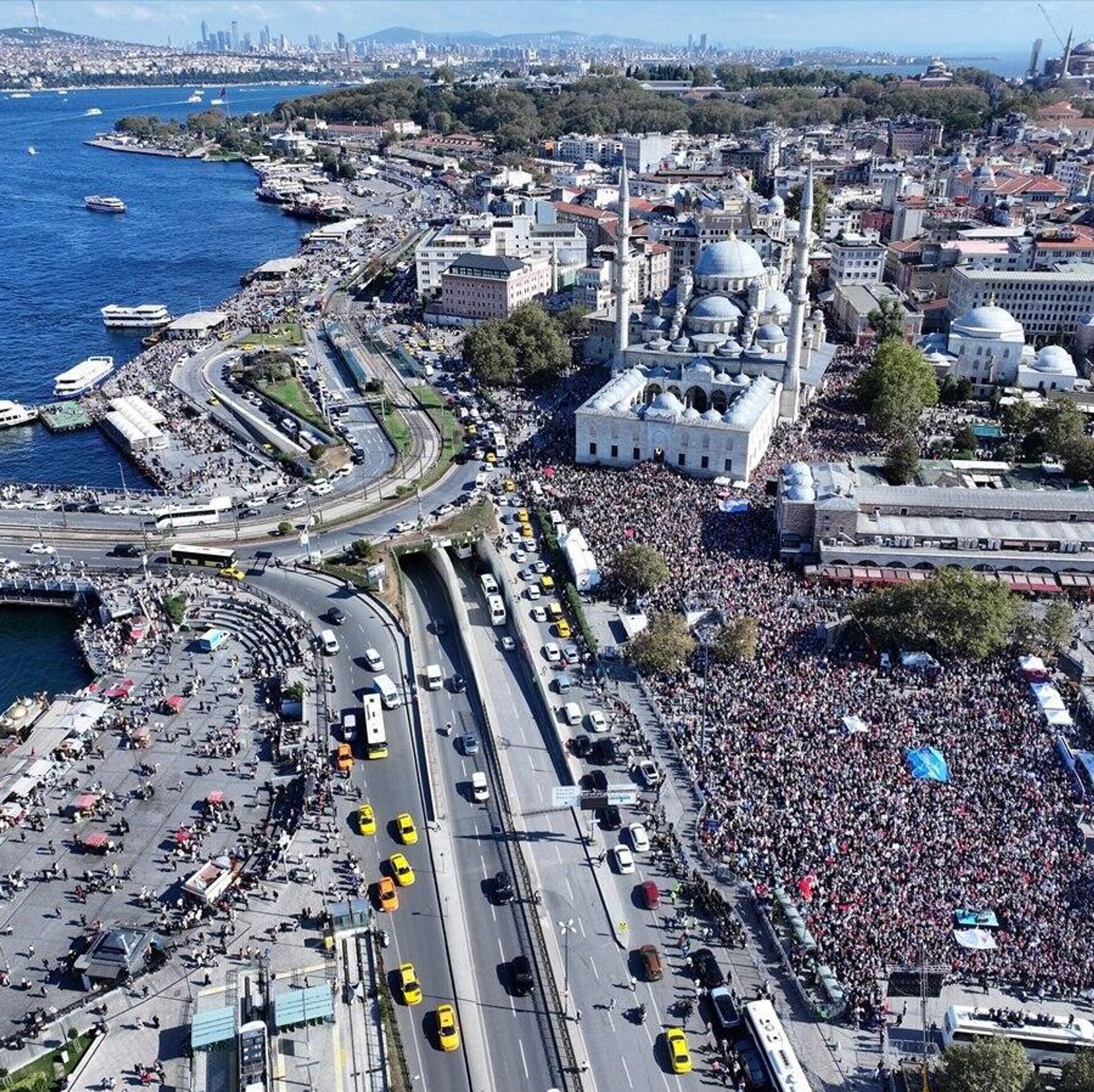 تظاهرکنندگان پس از نماز عصر از مسجد ایاصوفیه به سمت میدان امینونو، جایی که تجمع برگزار شد، راهپیمایی کردند.