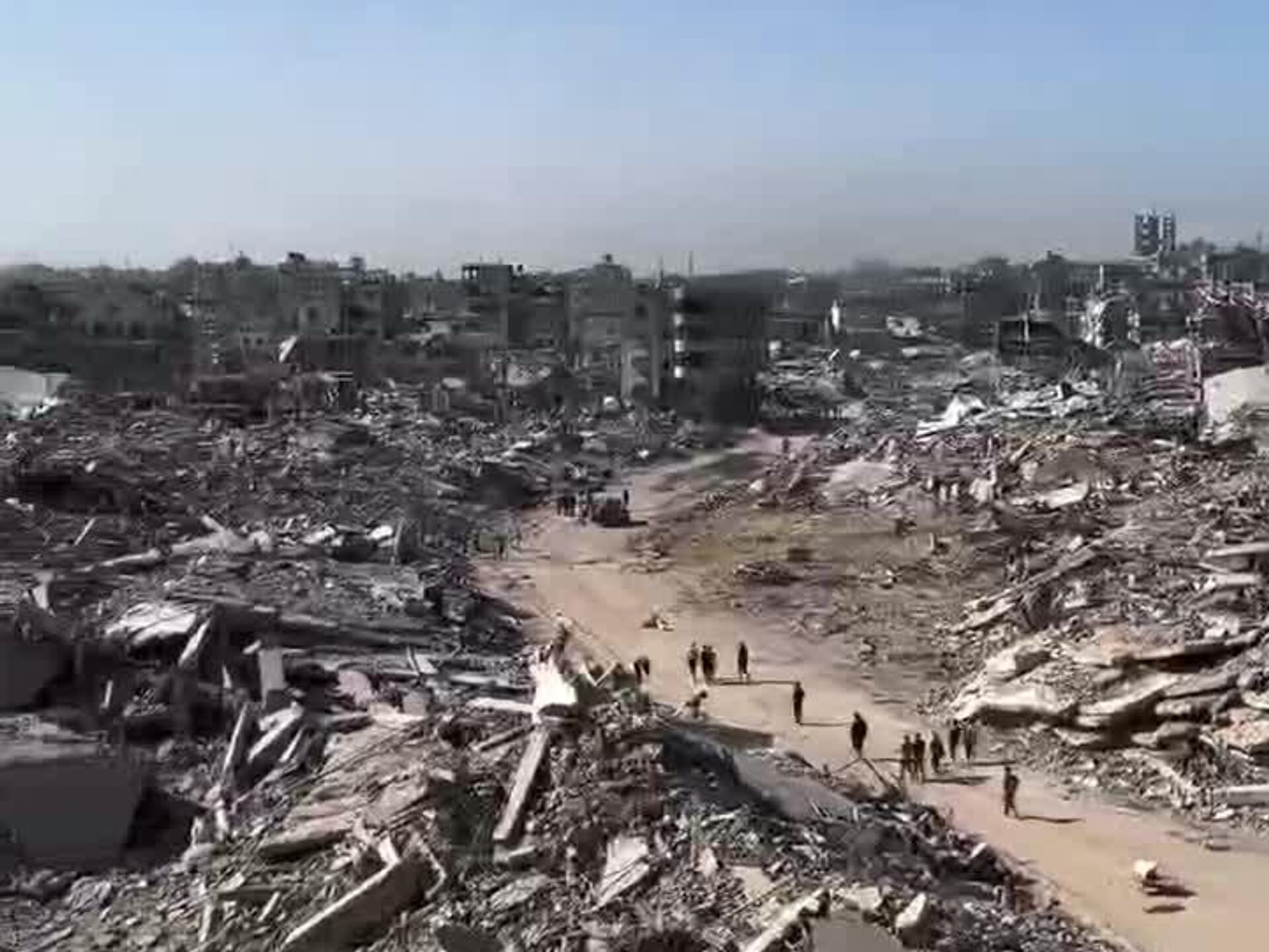 ویدیویی که ویرانیهای گستردهای را که توسط اردوی اسرائیل در منطقهٔ شیخ رضوان شهر غزه پس از آخرین عملیات نظامیاش، پیش از اعلام آتشبس در نوار غزه بر جا گذاشته شده، نشان میدهد.