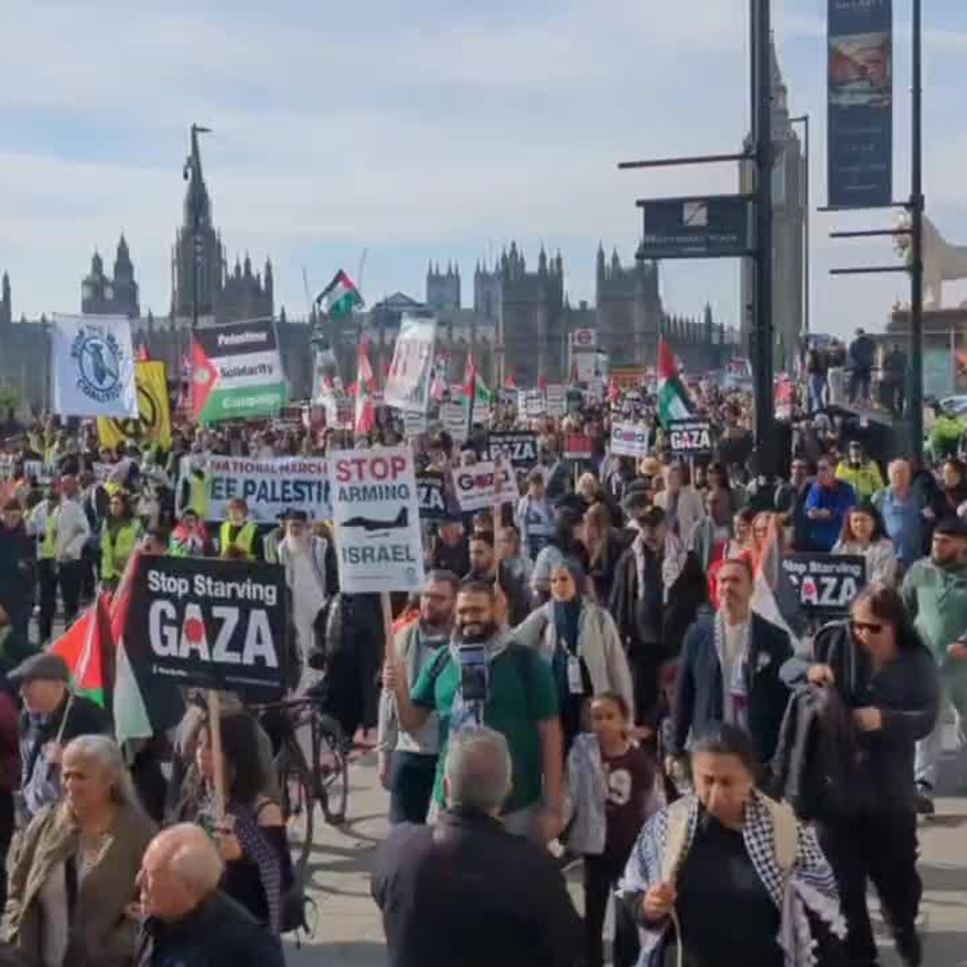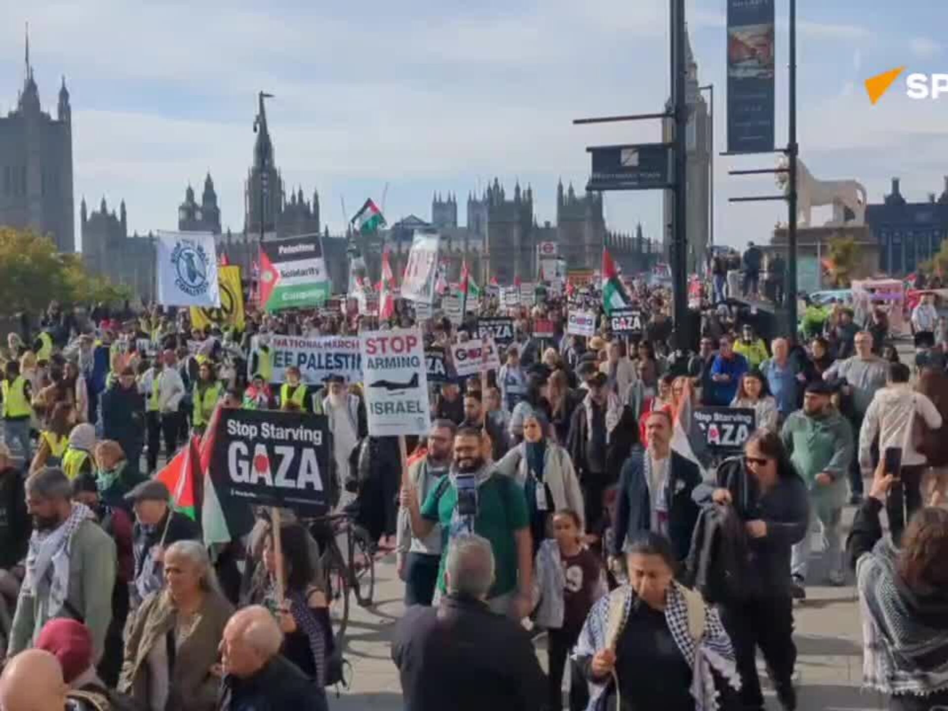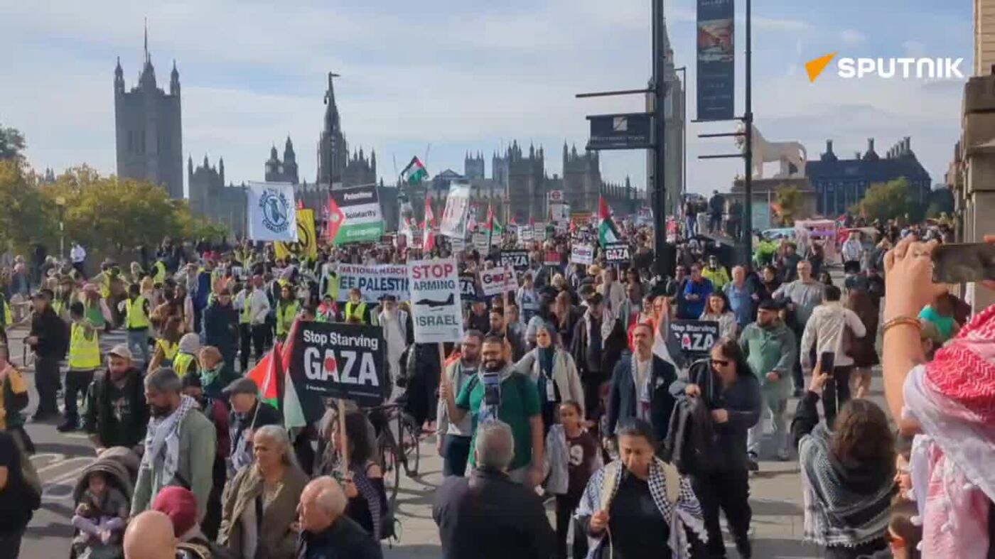 خبرنگار اسپوتنیک گزارش داد: دهها هزار نفر در مرکز لندن در حمایت از فلسطین تحت عنوان «راهپیمایی ملی برای فلسطین» تظاهرات کردند