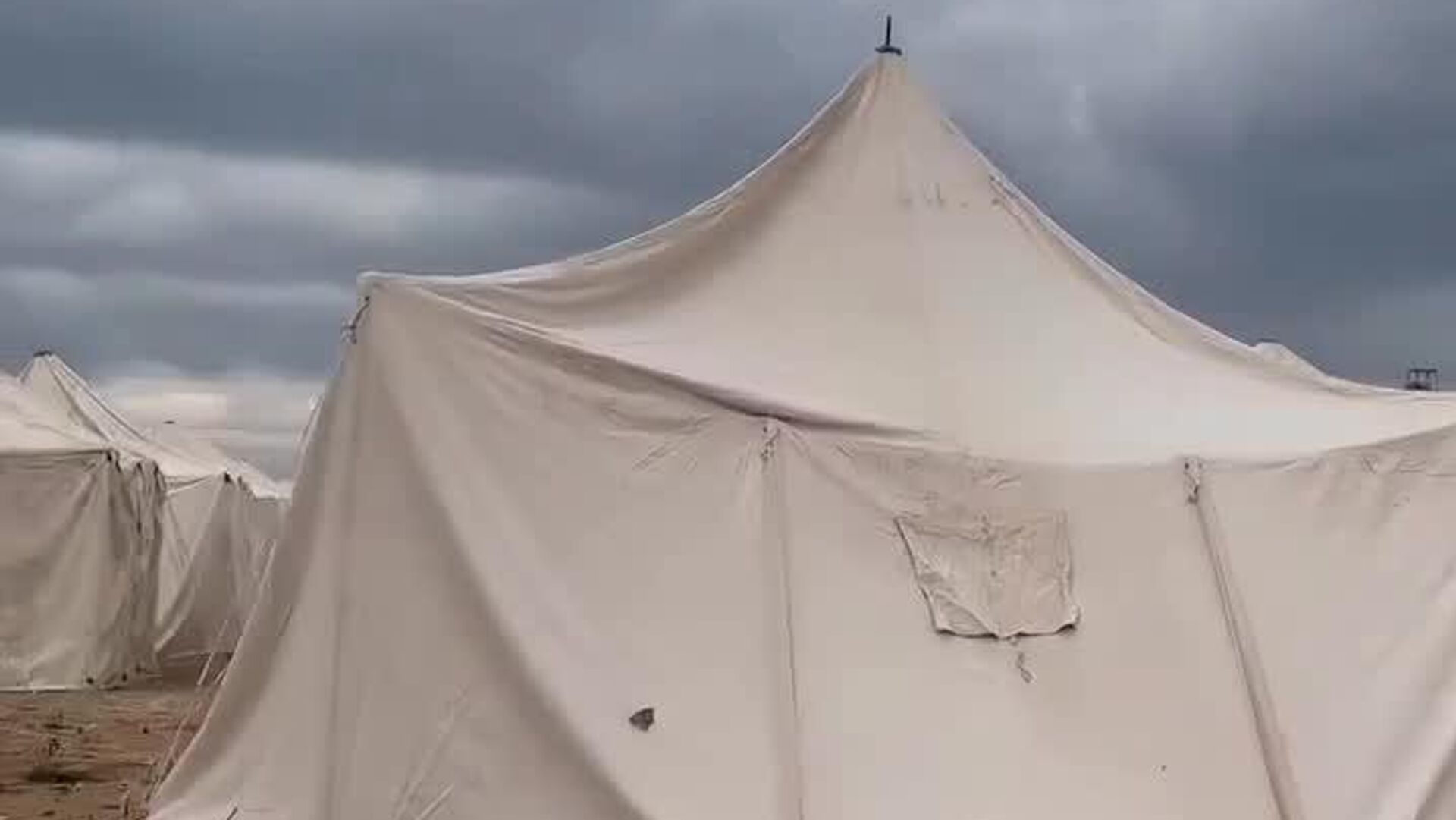 تصاویر چادرهایی را نشان میدهد که مردم بیخانمان، مجبور به زندگی در آنها هستند.
