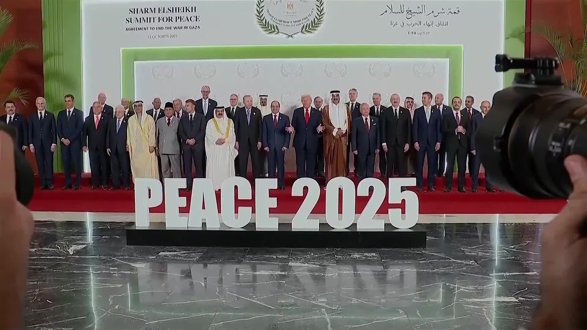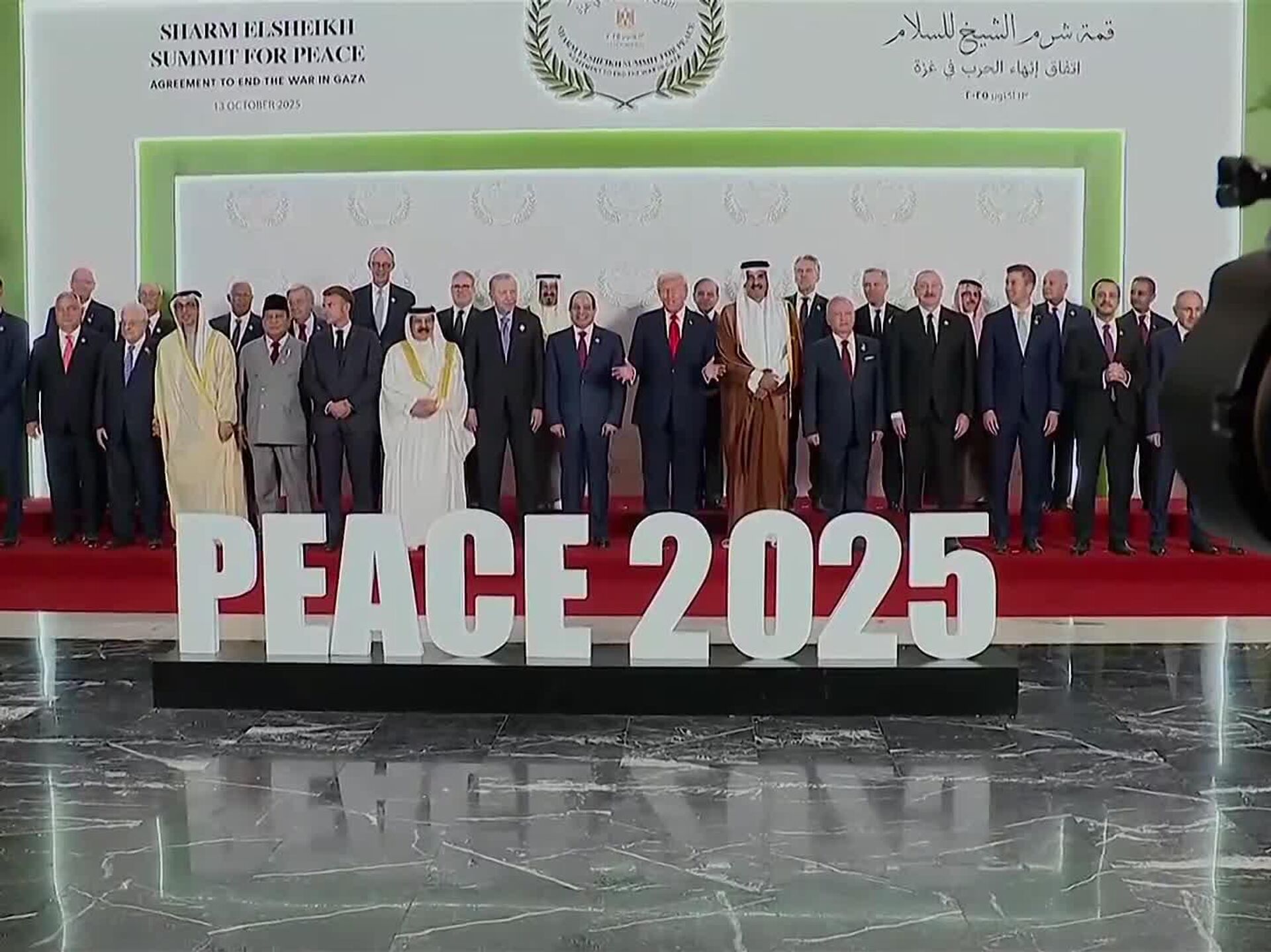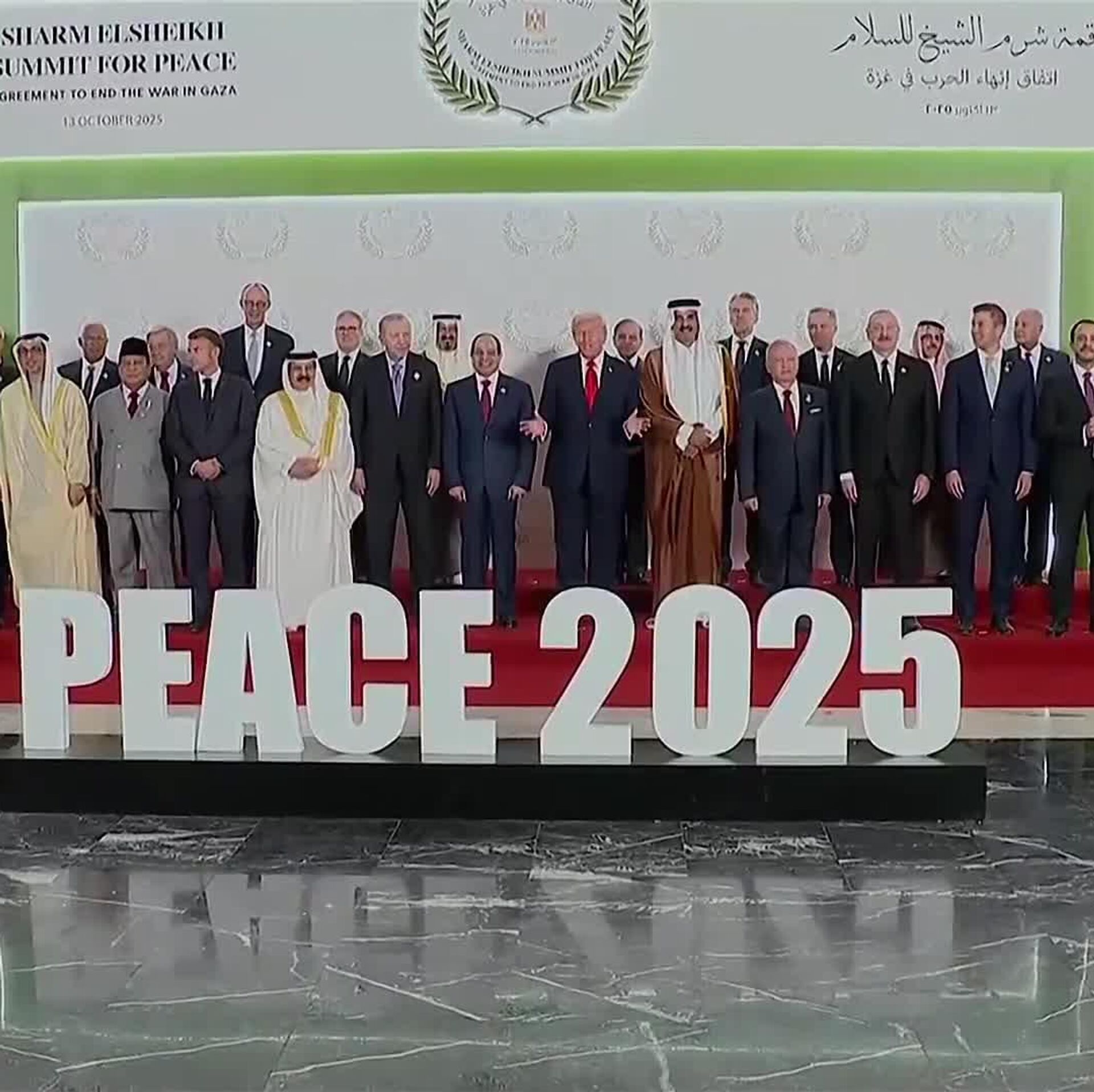 عکس دسته جمعی رهبران شرکت کننده در نشست صلح غزه در شرم الشیخ