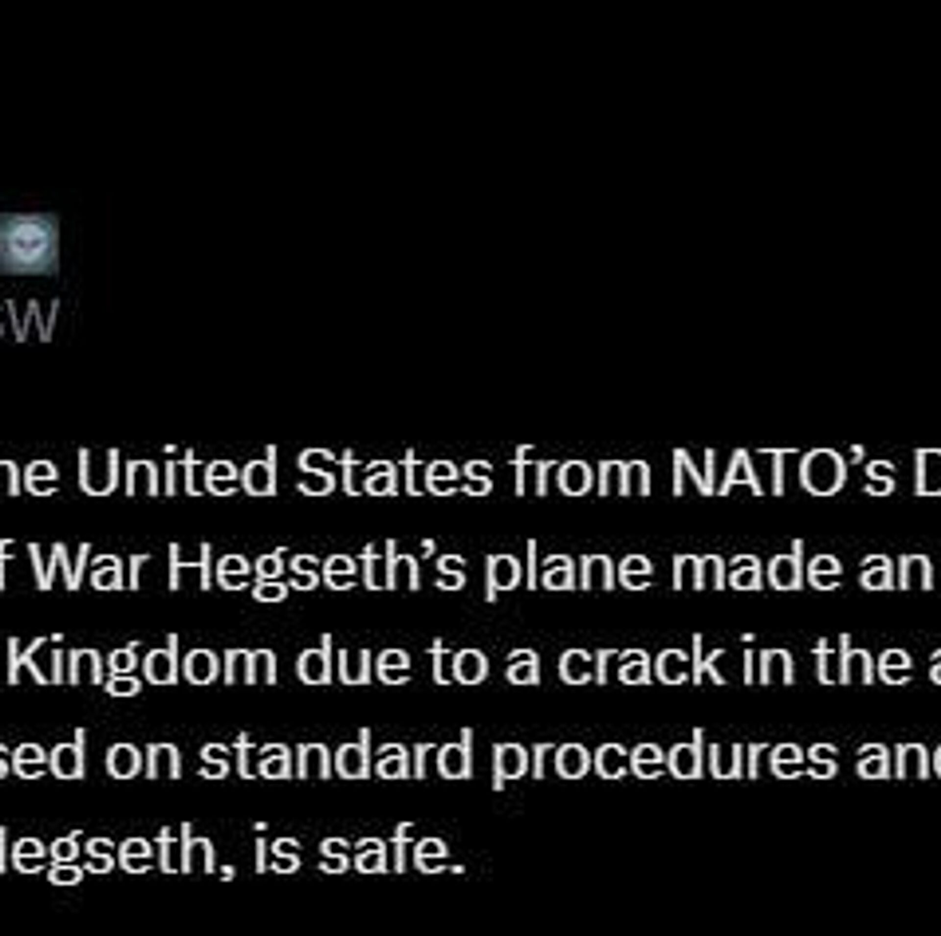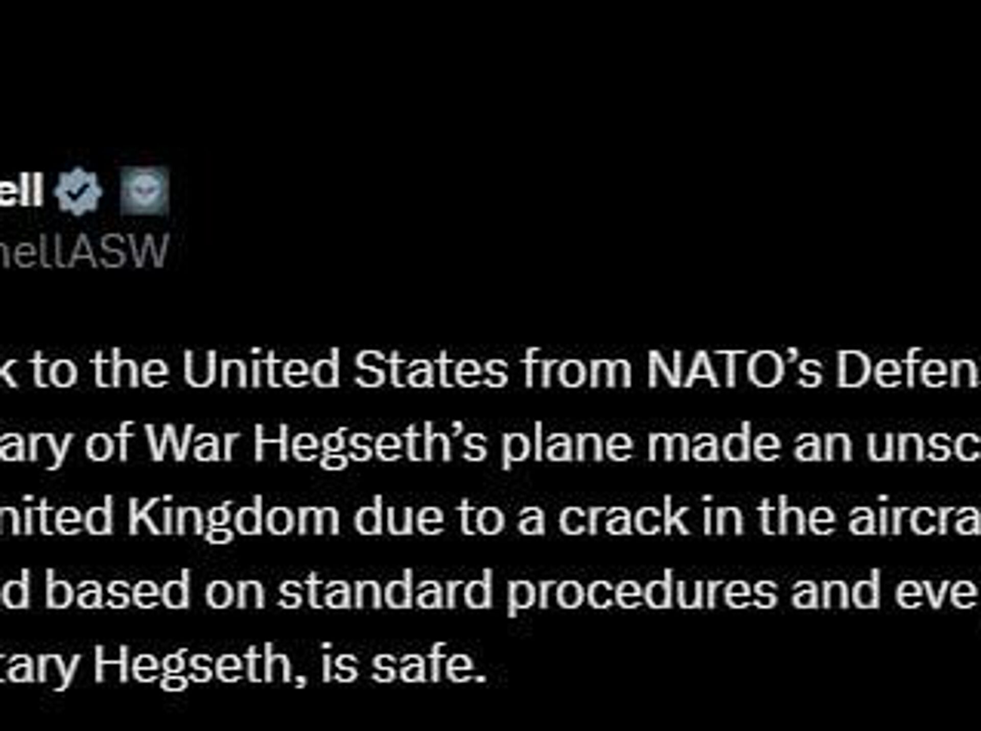 ◻این هواپیما طبق روال استاندارد فرود آمد و همه سرنشینان، از جمله وزیر هگزت، در سلامت کامل هستند.