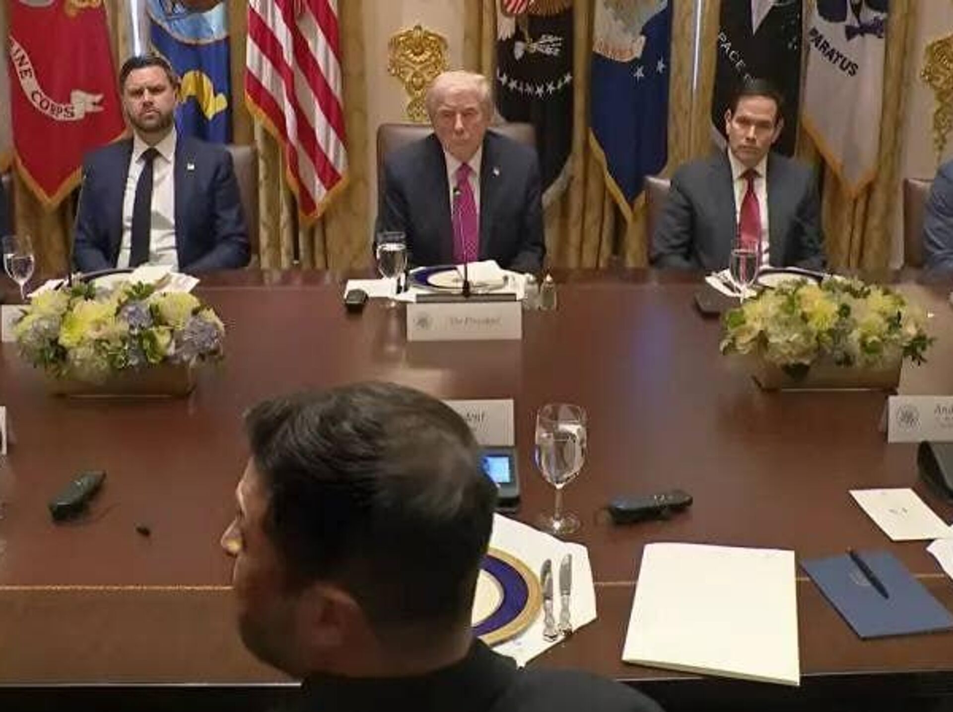 گزارشهای رسانهها حاکی از آن است که رئیس پنتاگون (در تصویر شخص سمت راست) در حالی که نکتایی به رنگ پرچم روسیه بسته بود، به جلسه با زلنسکی آمدما را در سایت و... 17.10.2025, اسپوتنیک افغانستان