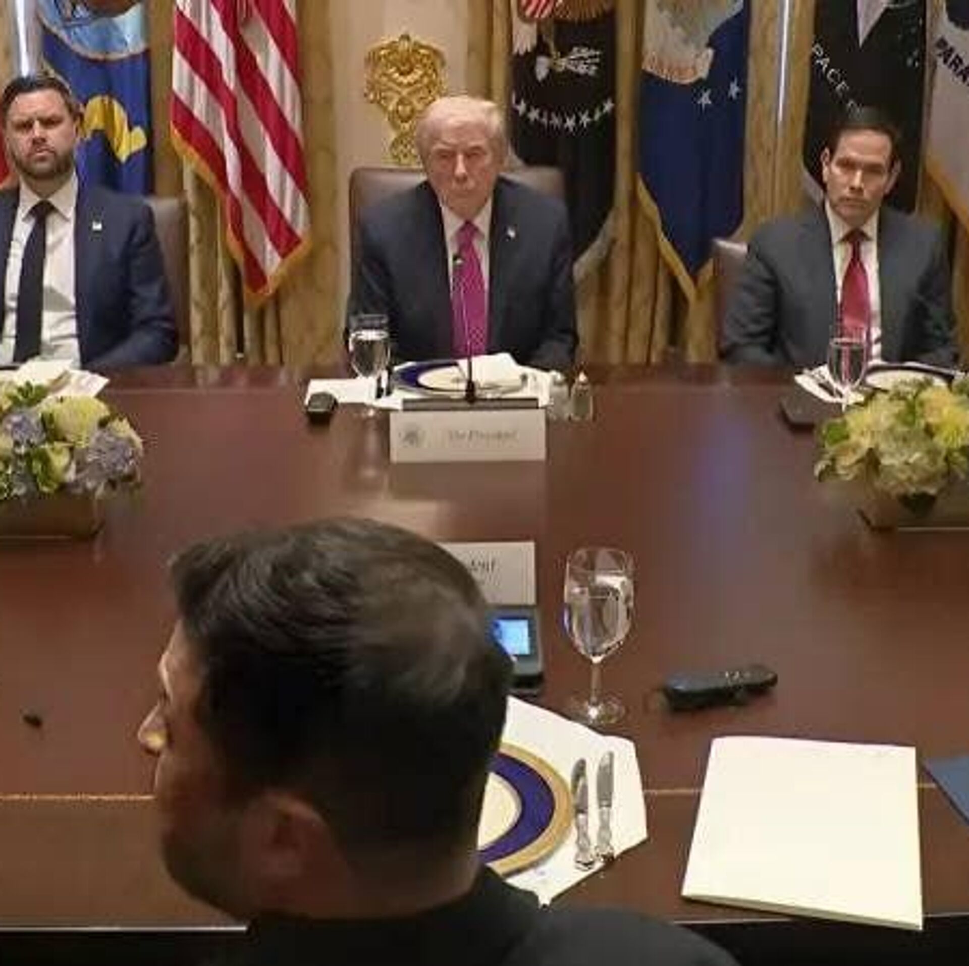 22:50 17.10.2025 (بازآوری شدن: 23:10 17.10.2025) گزارشهای رسانهها حاکی از آن است که رئیس پنتاگون (در تصویر شخص سمت راست) در حالی که نکتایی به رنگ پرچم روسیه بسته بود، به جلسه با زلنسکی آمد