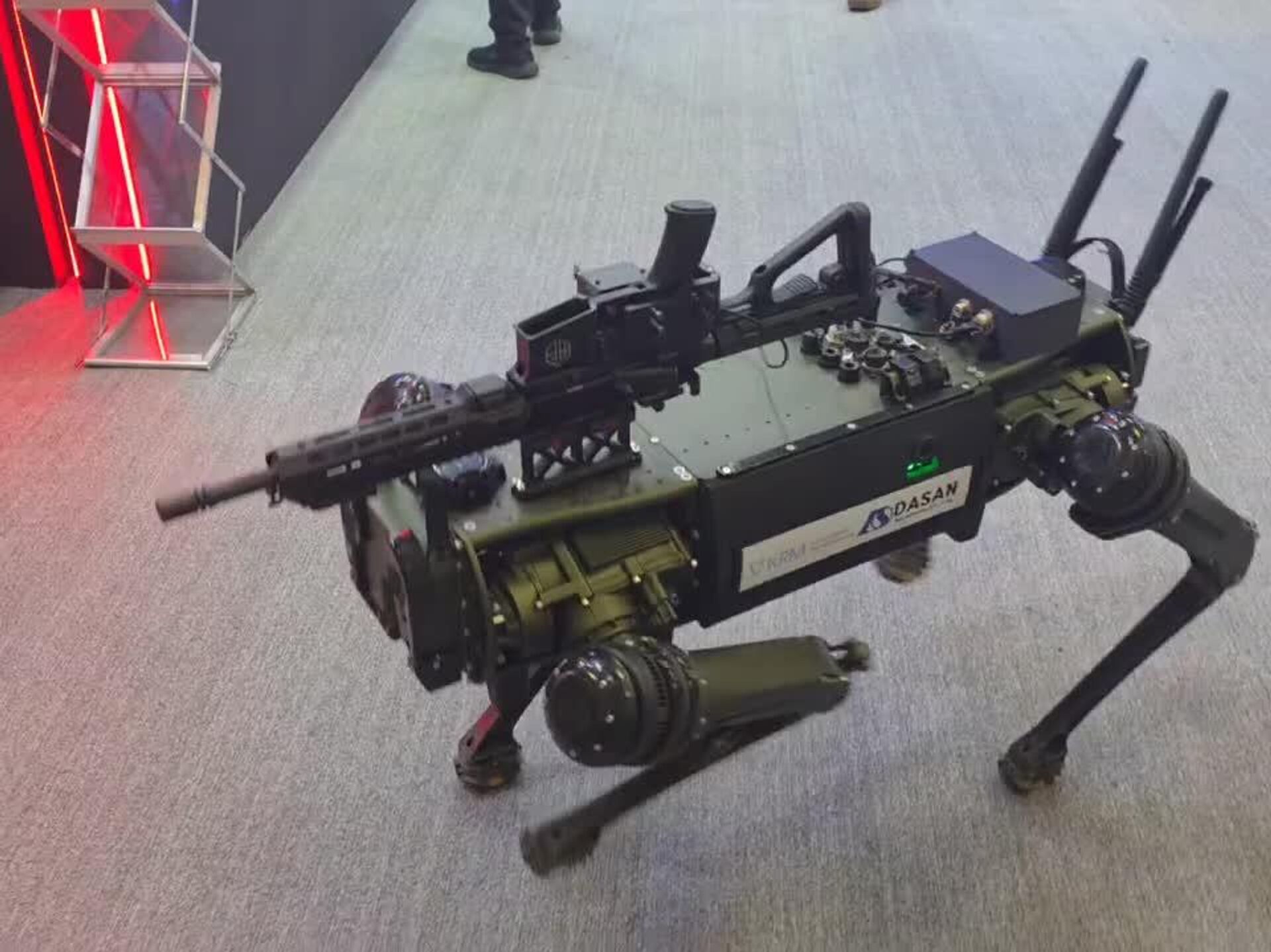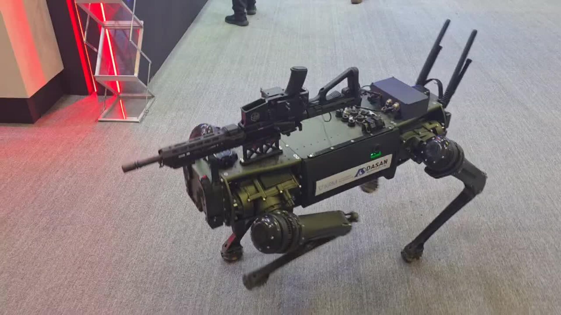 01:25 21.10.2025 (بازآوری شدن: 02:50 21.10.2025) خوشآمدگویی یک ربات هوشمند به مهمانان در نمایشگاه بینالمللی دفاعی سئول در کوریای جنوبی
