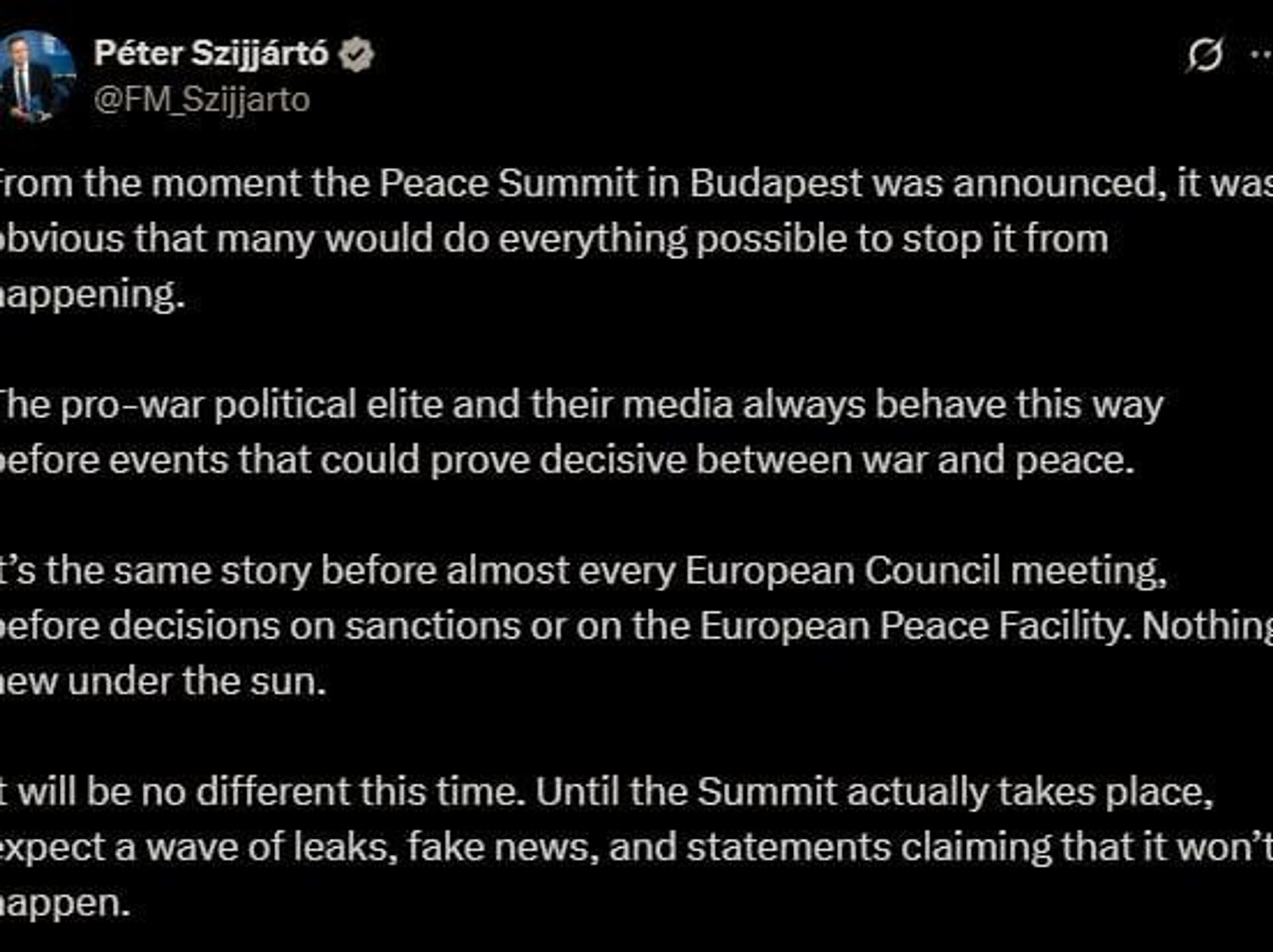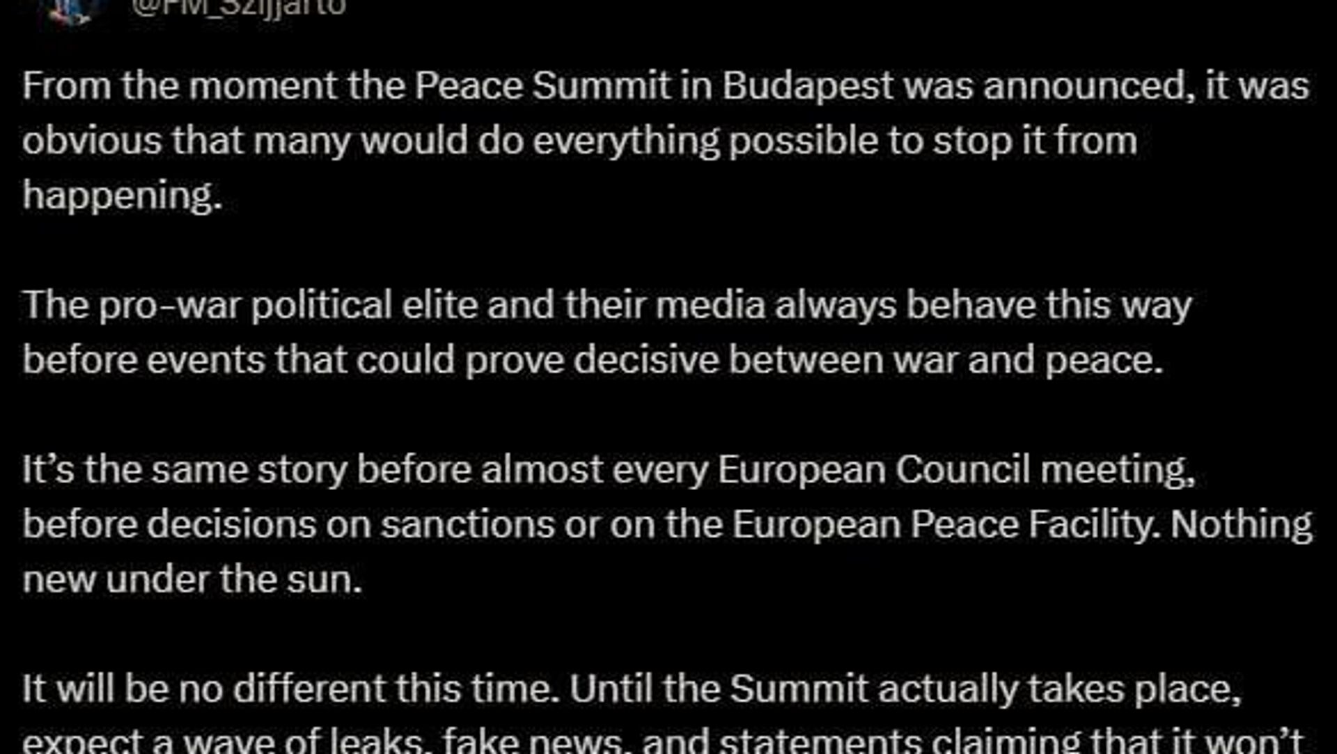 پیتر سیارتو، وزیر خارجه هنگری نسبت به تلاشهای نخبگان سیاسی طرفدار جنگ برای خرابکاری در اجلاس صلح بوداپست هشدار داد.