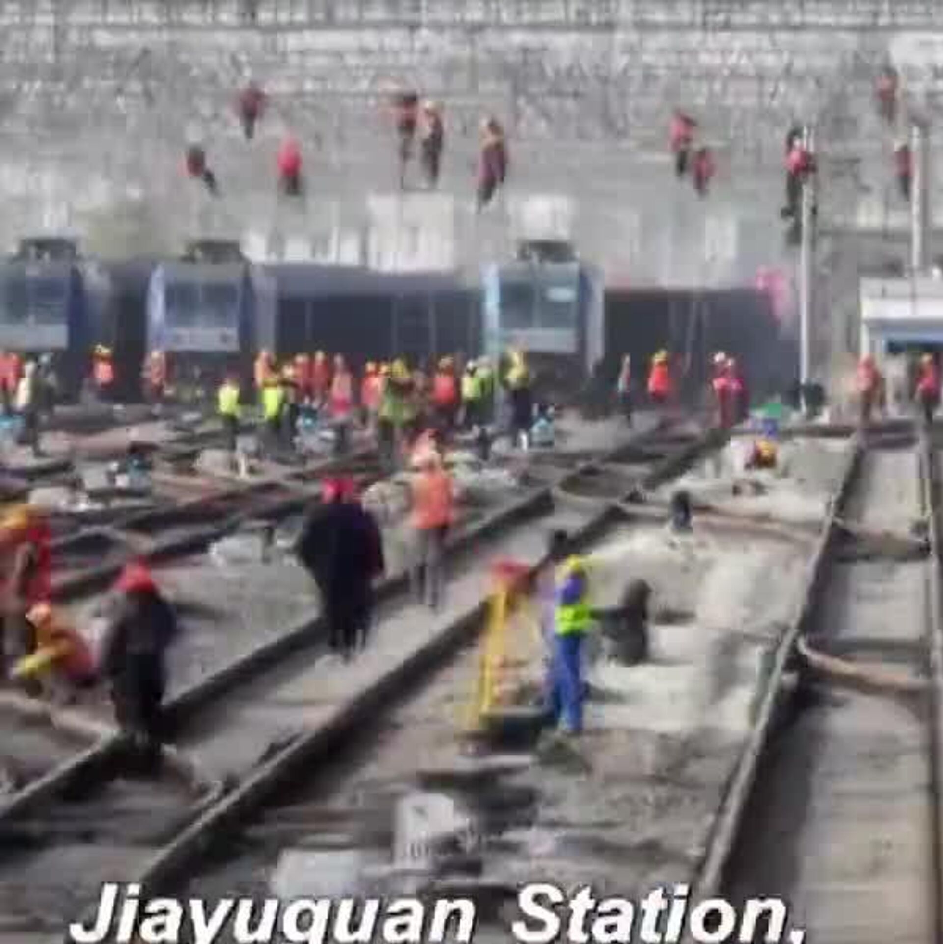 در ایستگاه جیایوگوان، واقع در خط آهن لانژو-سینکیانگ در شمال غربی چین، کارگران راهآهن نصب بینقص دو مجموعه سوئیچ را تنها در 210 دقیقه به پایان رساندند!