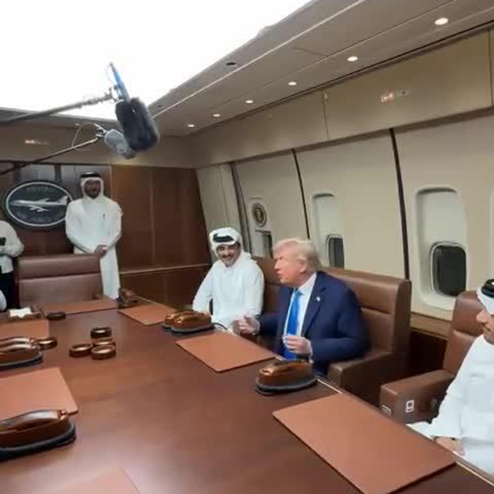 🟠دونالد ترامپ، رئیسجمهور امیکا، در جریان پرواز با طیاره حاملش با امیر قطر دیدار کرد.