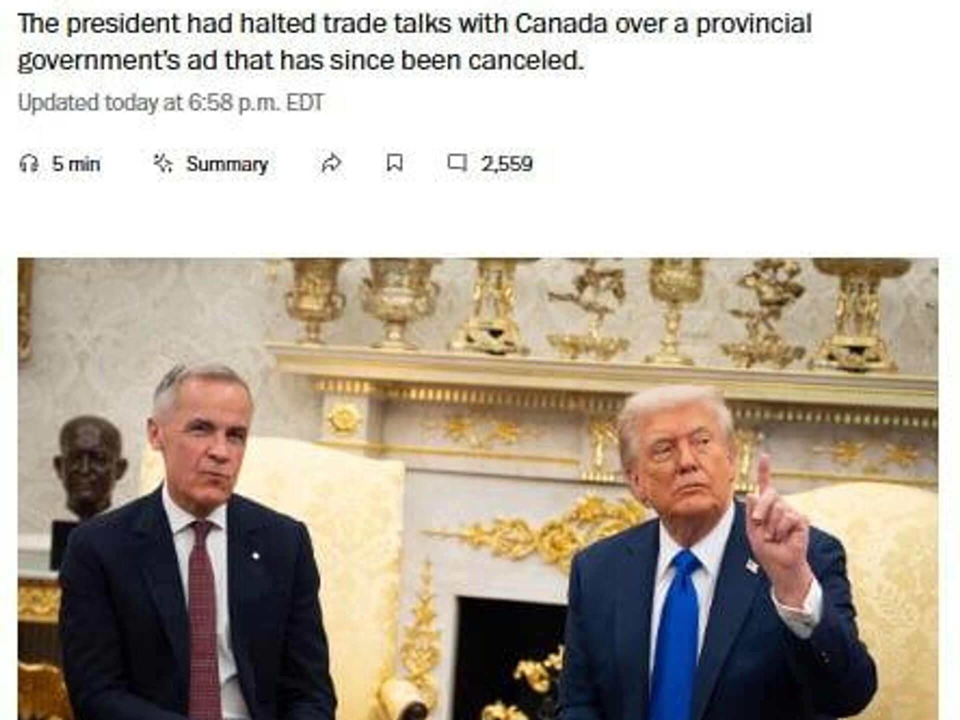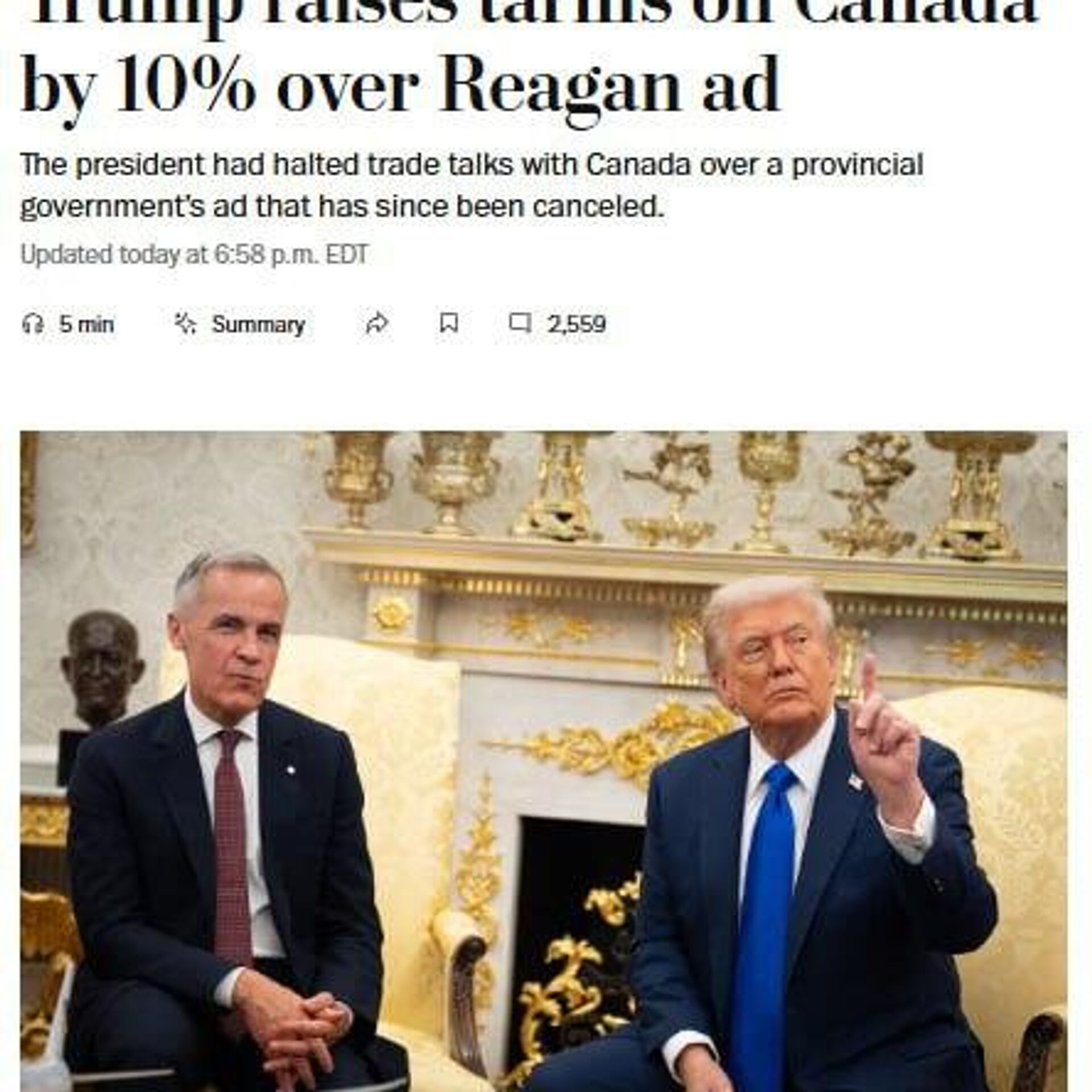 ◻رسانههای خارجی اعلام ترامپ مبنی بر افزایش ۱۰ درصدی تعرفههای تجاری علیه کانادا را به دلیل یک کمپین تبلیغاتی با حضور نظرات رونالد ریگان، رئیس جمهور سابق ایالات متحده، در مورد تعرفهها، که ترامپ آن را یک فریب خواند، نادیده نگرفتهاند.
